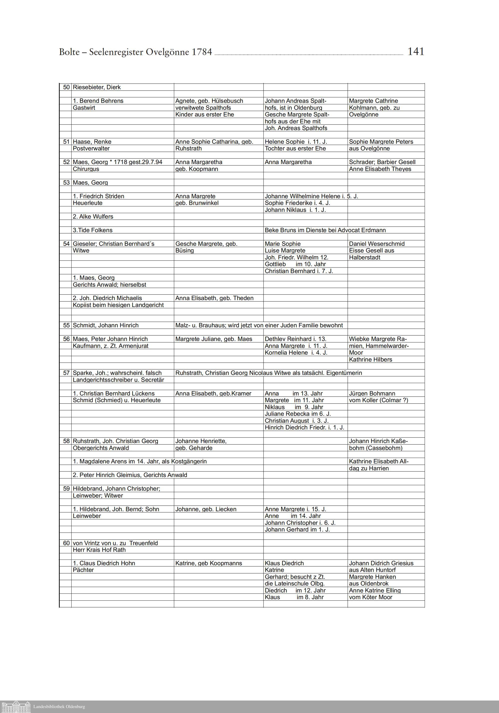 Seelenregister Ovelgönne 1784. Von Dieter Bolte