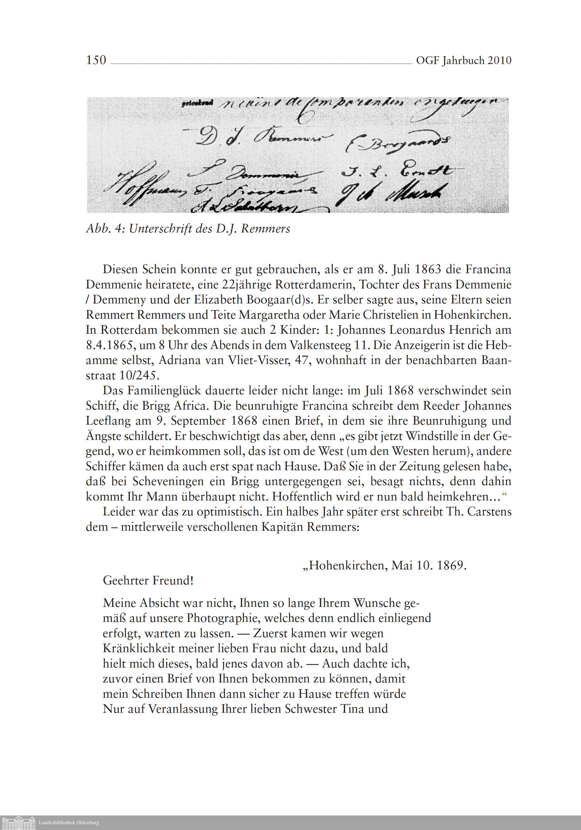 Neue Verbindungen der Niederlande mit Oldenburg. D. J. Remmers - ein Hohenkirchener...