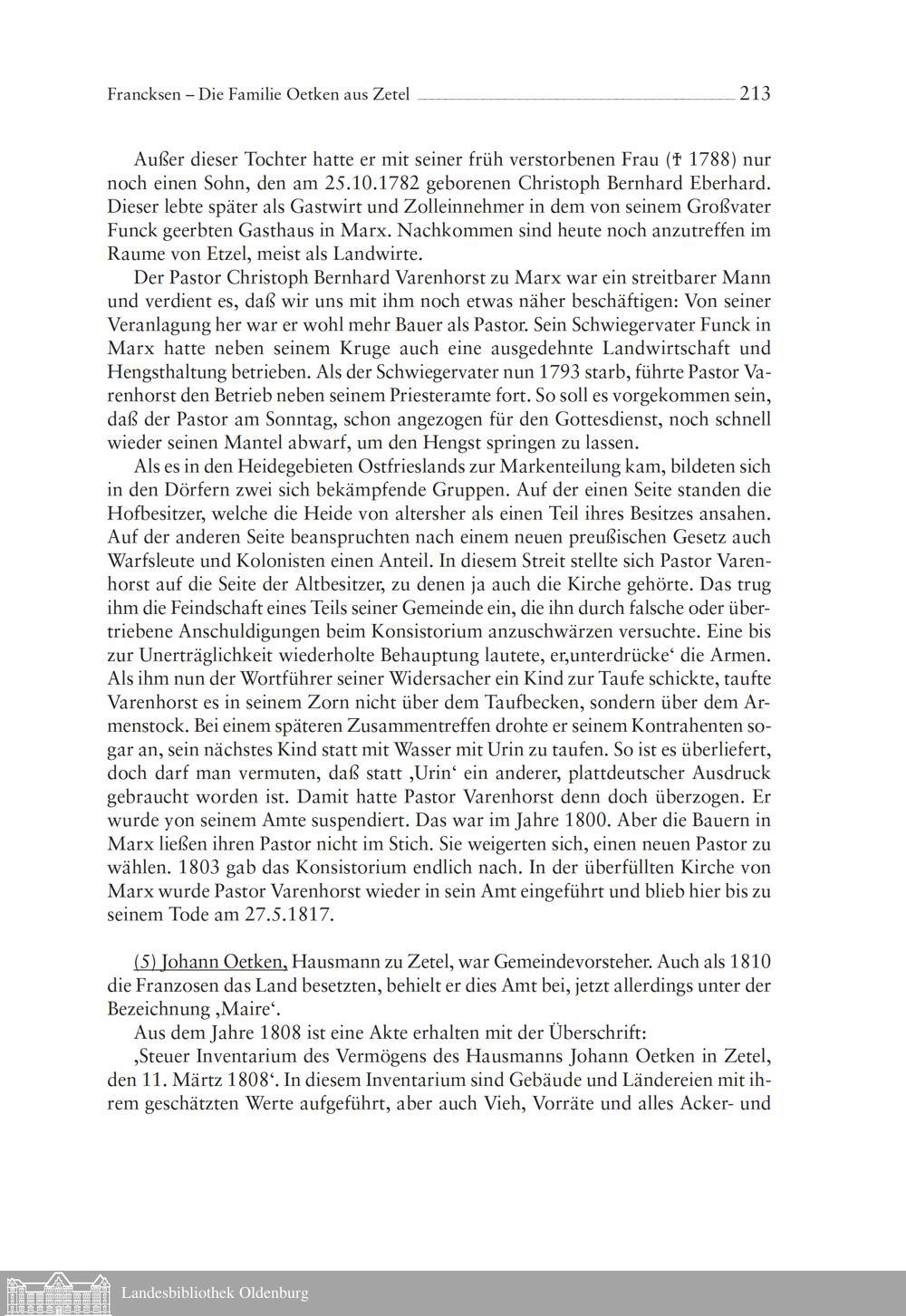 Die Familie Oetken aus Zetel. Von Hans H. Francksen