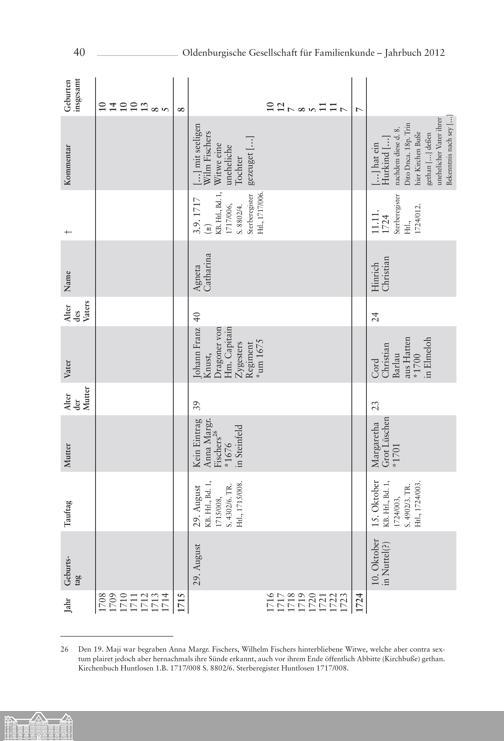 "... ein unehlich Kind gebohren". Uneheliche Geburten im Kirchspiel Huntlosen zwischen...