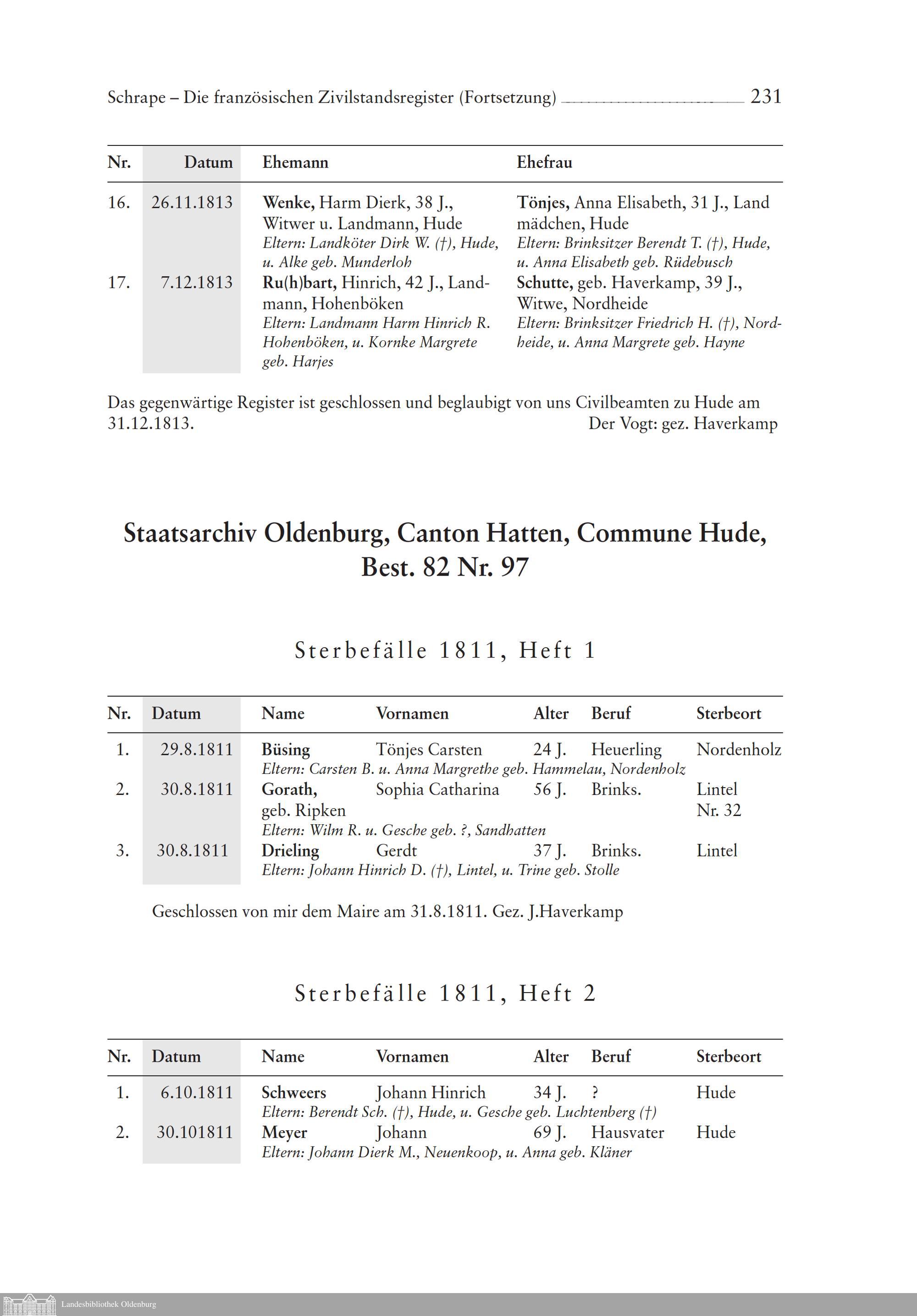 Die französischen Zivilstandsregister. Von Joachim Schrape
