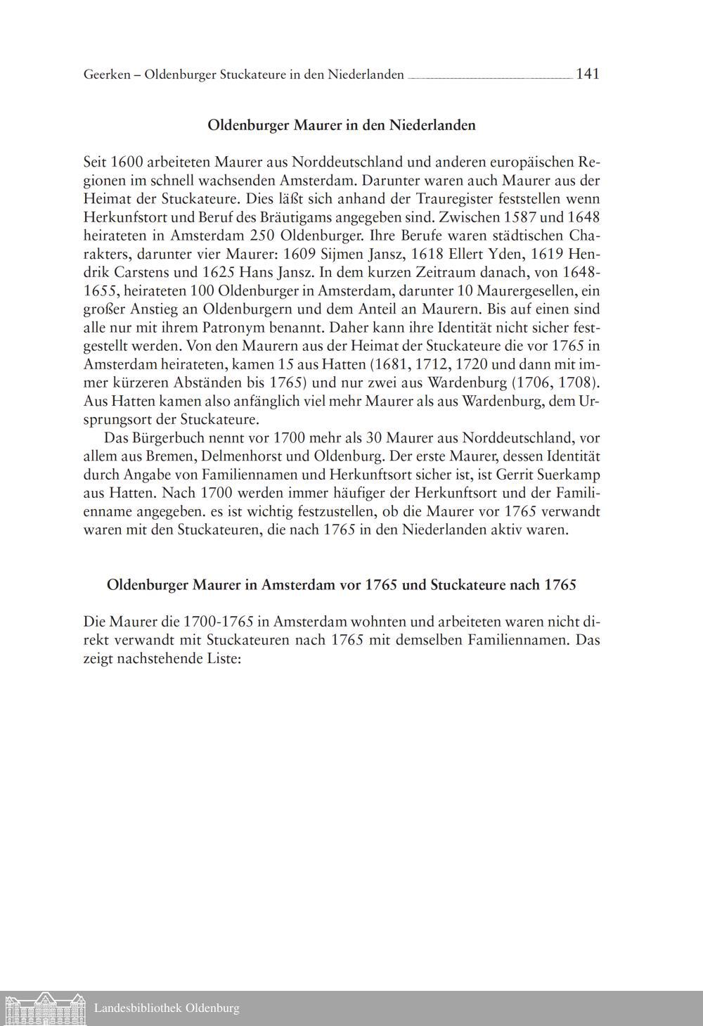 Oldenburger Stuckateure in den Niederlanden. Von Gerhard Geerken, Eindhoven