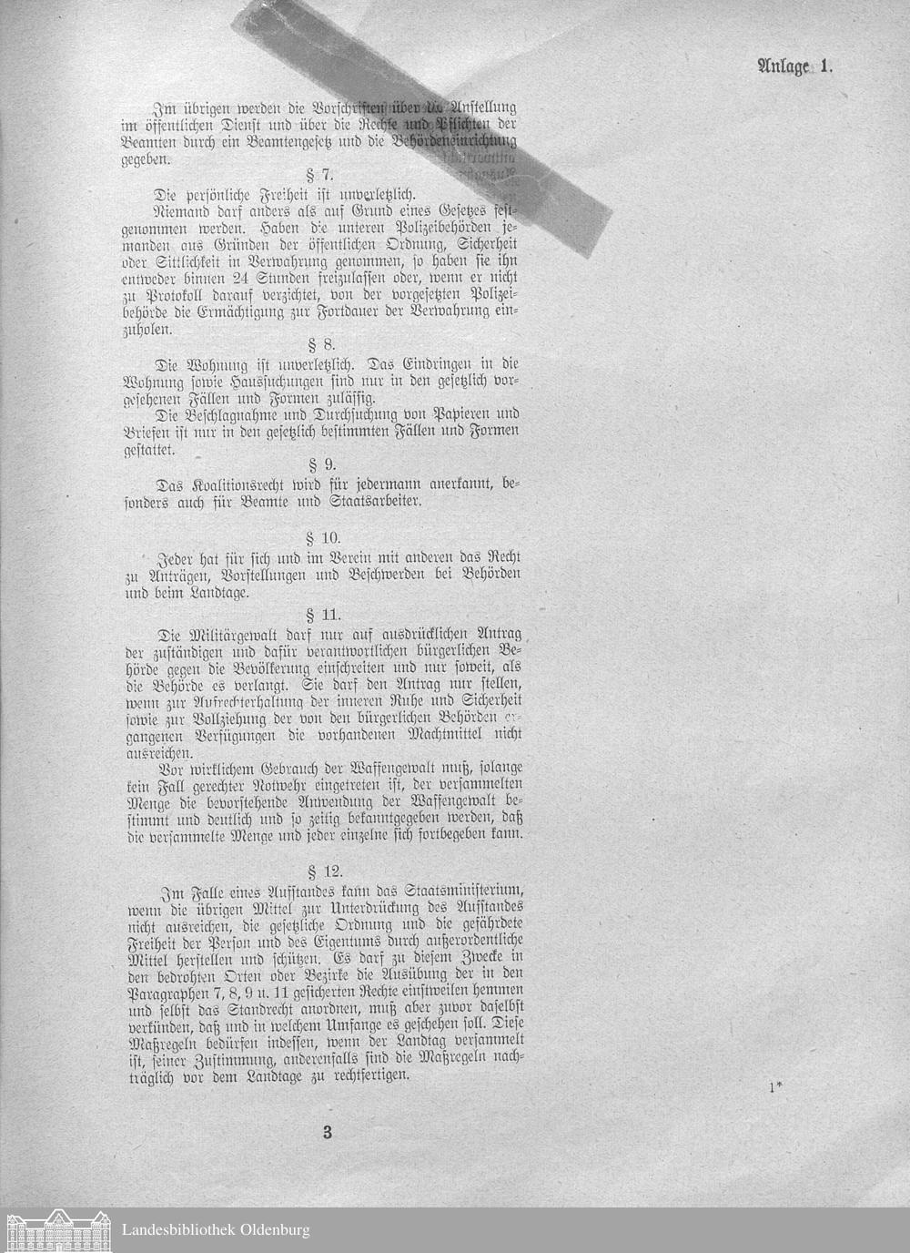 Verhandlungen der ... Versammlung des ... Landtags des Freistaats Oldenburg / Anlagen zu den Niederschriften und Berichten / Anlagen zu den Protokollen und Berichten