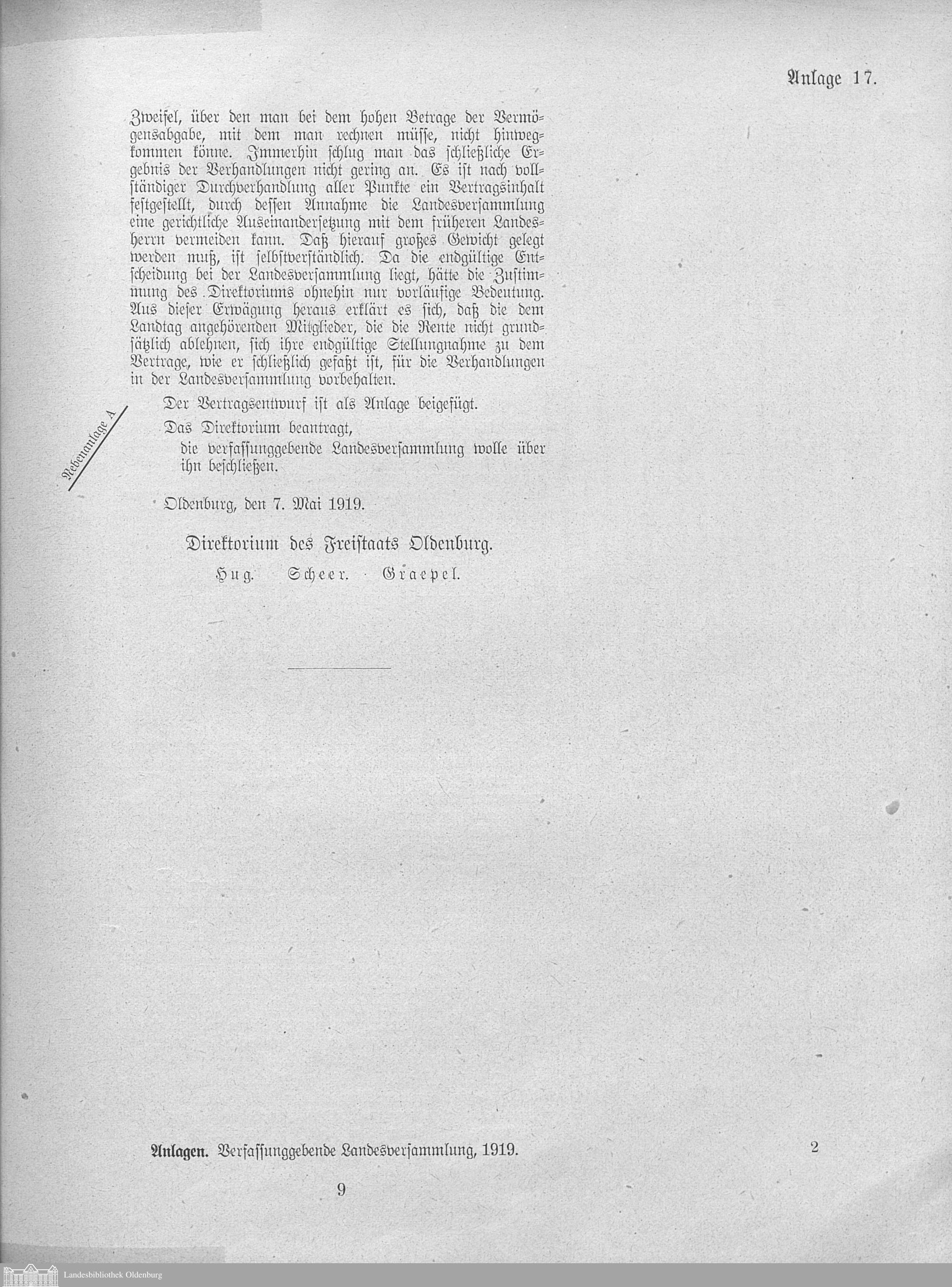 Verhandlungen der ... Versammlung des ... Landtags des Freistaats Oldenburg / Anlagen zu den Niederschriften und Berichten / Anlagen zu den Protokollen und Berichten