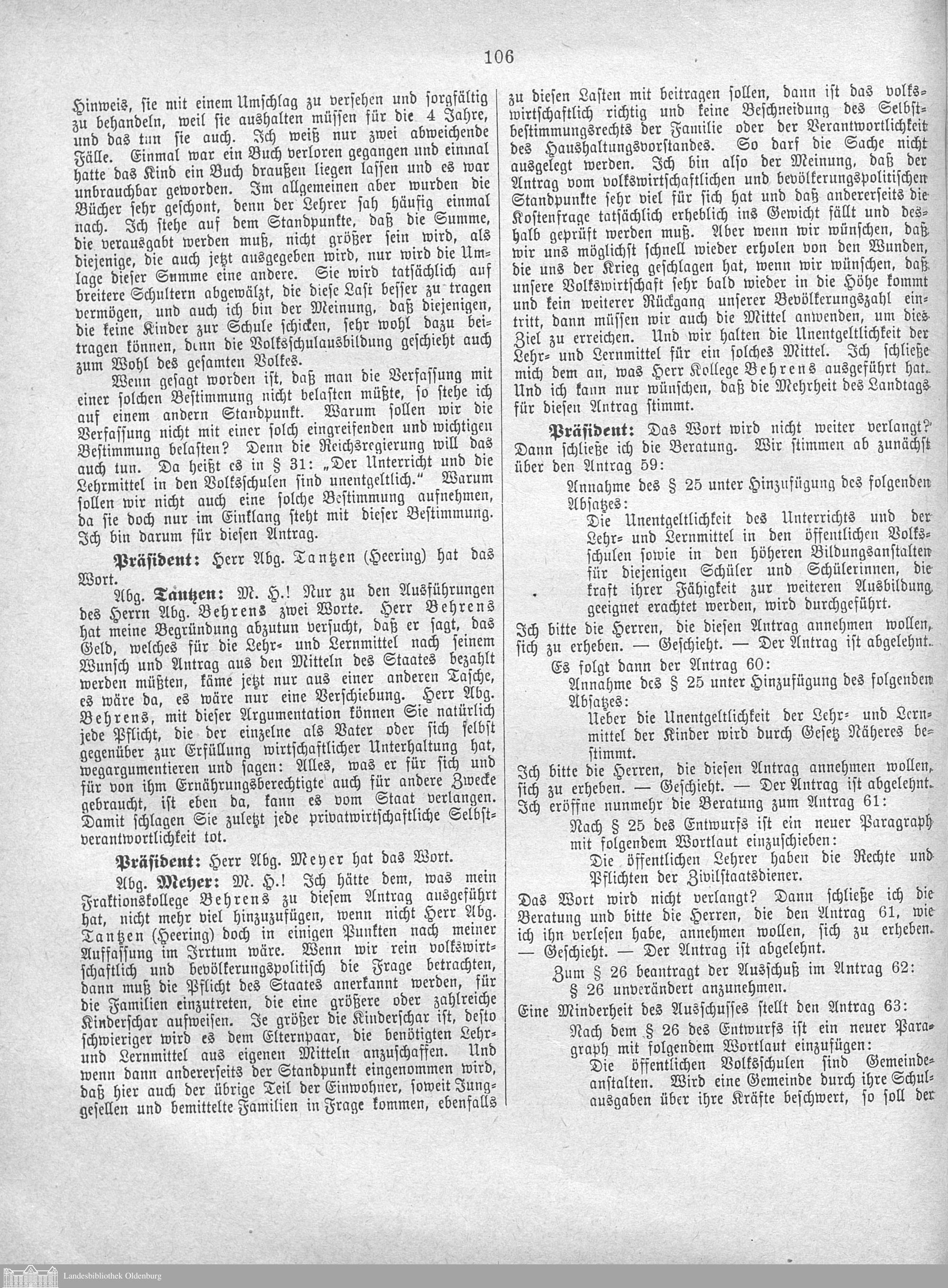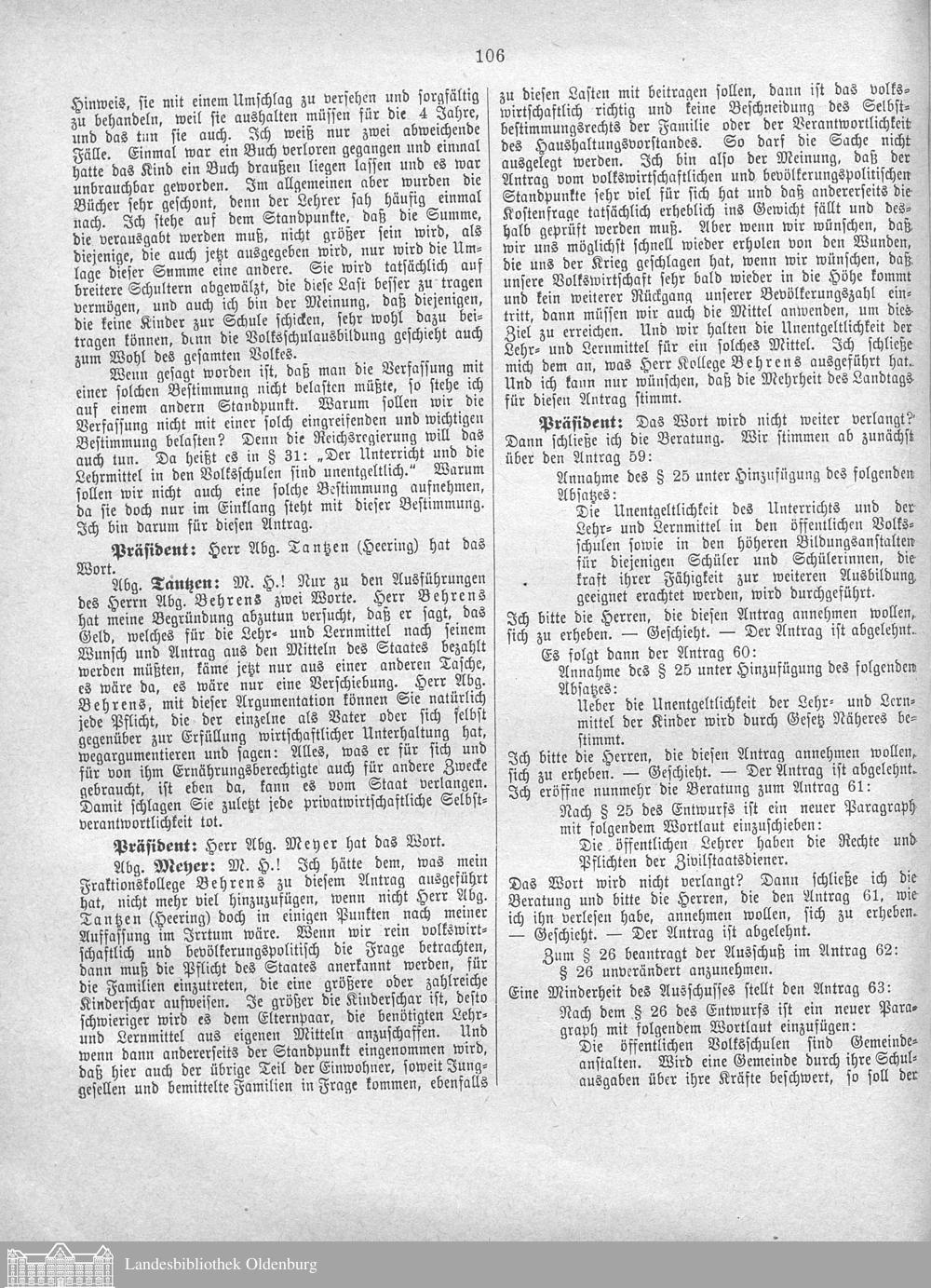 Verhandlungen der ... Versammlung des ... Landtags des Freistaats Oldenburg