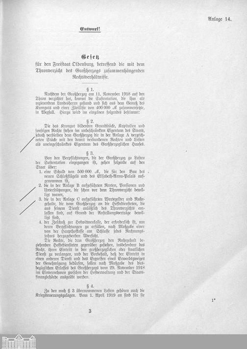 Verhandlungen der ... Versammlung des ... Landtags des Freistaats Oldenburg / Anlagen zu den Niederschriften und Berichten / Anlagen zu den Protokollen und Berichten