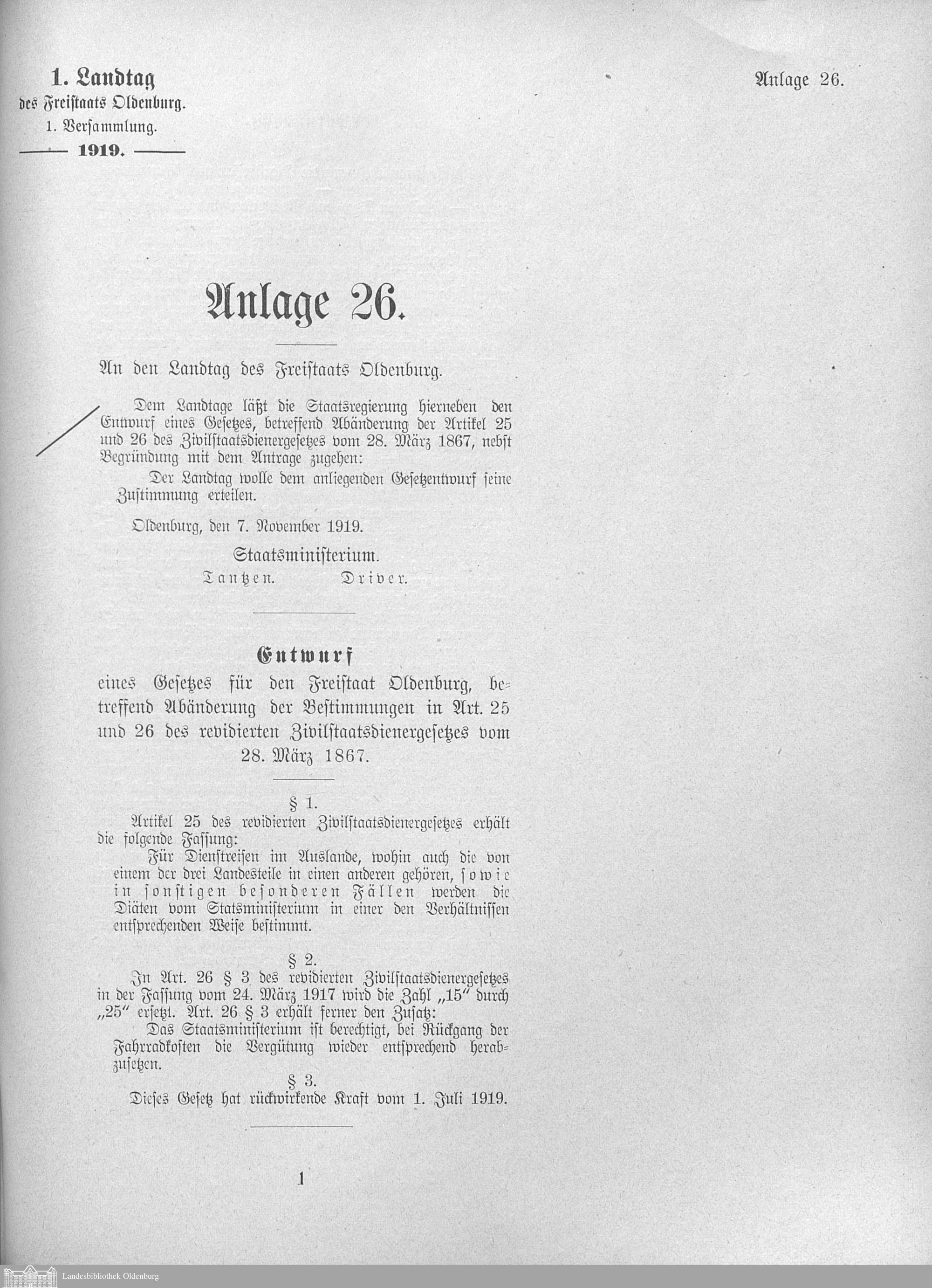 Verhandlungen der ... Versammlung des ... Landtags des Freistaats Oldenburg / Anlagen zu den Niederschriften und Berichten / Anlagen zu den Protokollen und Berichten
