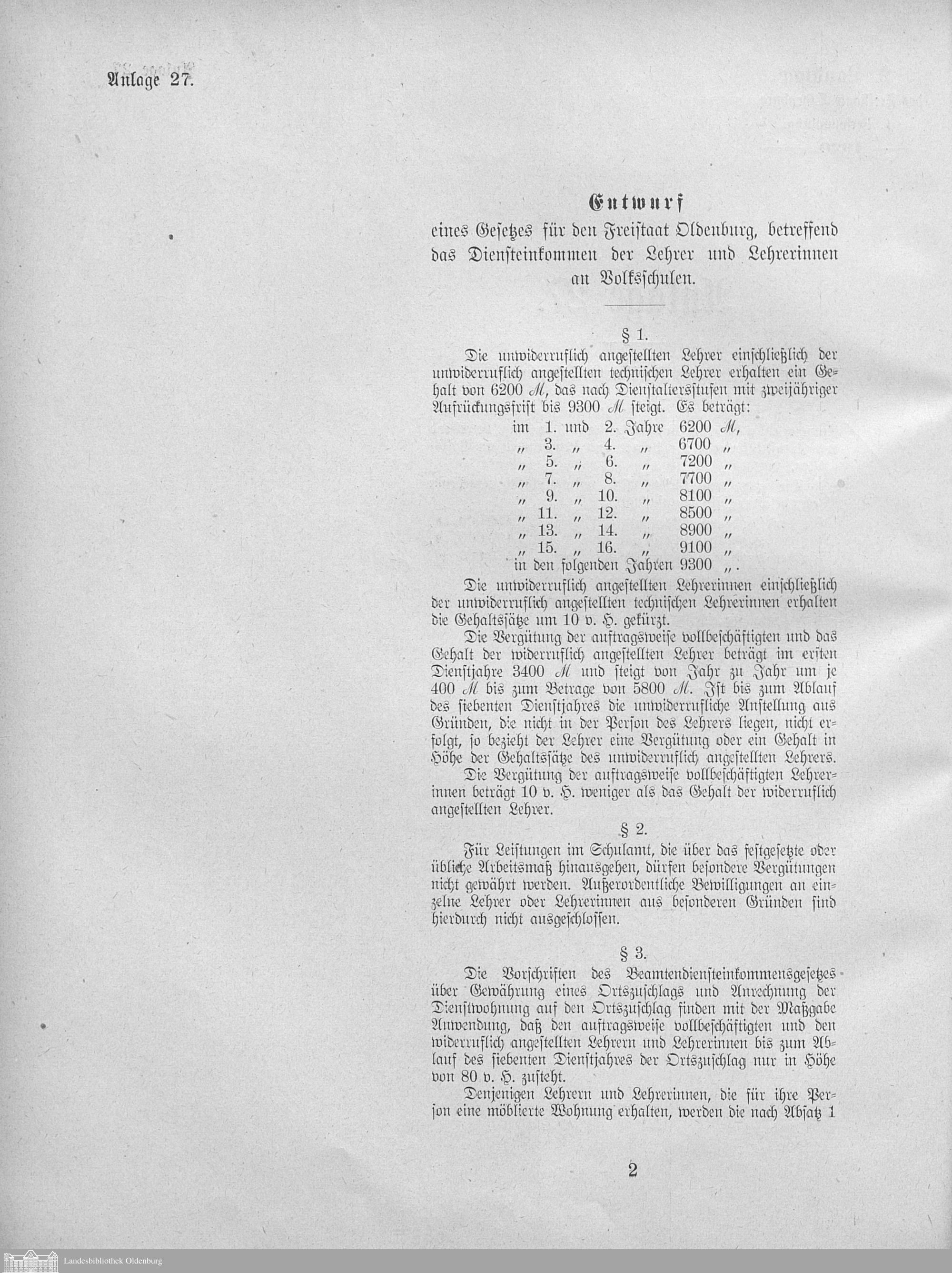 Verhandlungen der ... Versammlung des ... Landtags des Freistaats Oldenburg / Anlagen zu den Niederschriften und Berichten / Anlagen zu den Protokollen und Berichten