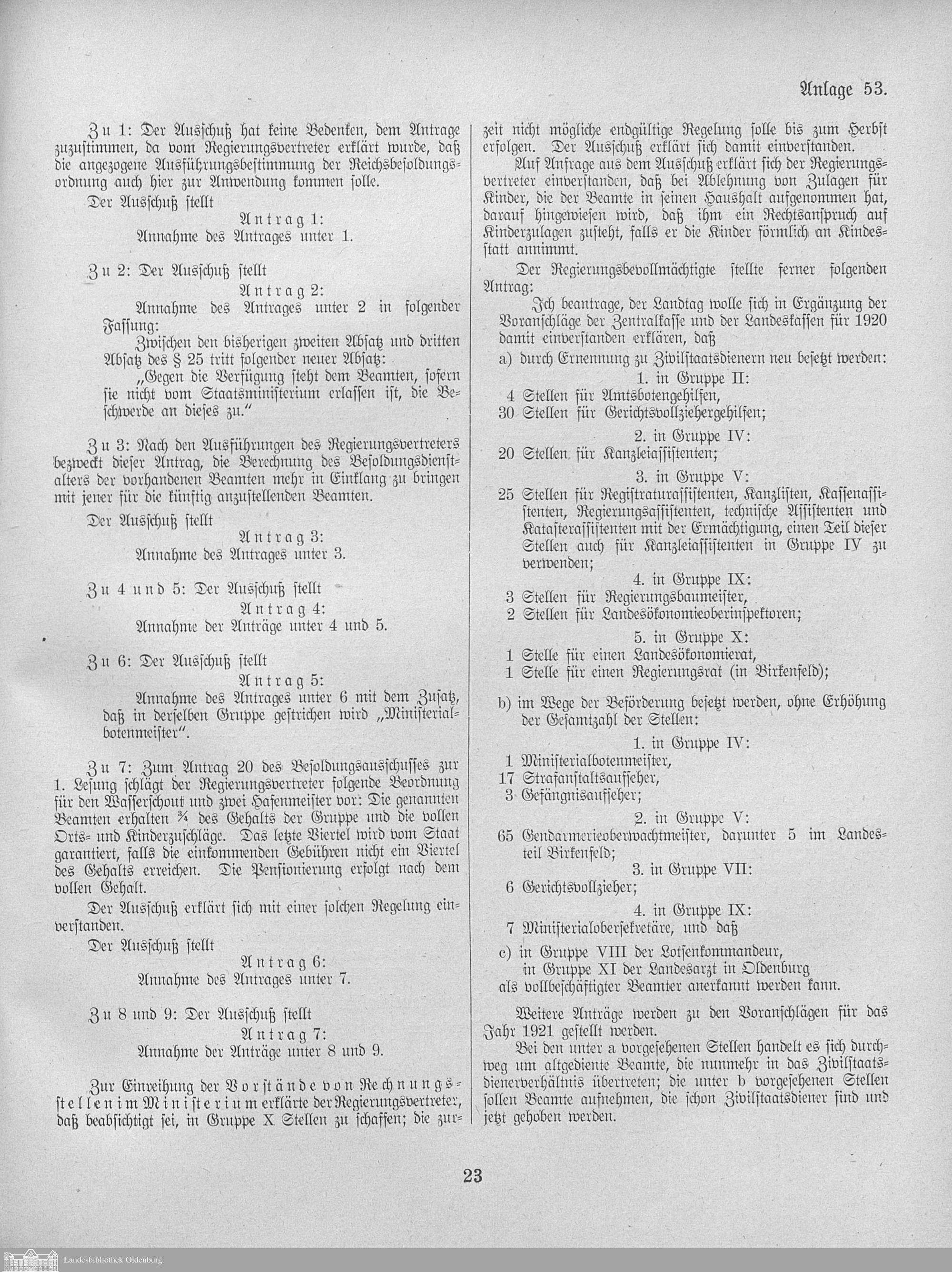 Verhandlungen der ... Versammlung des ... Landtags des Freistaats Oldenburg / Anlagen zu den Niederschriften und Berichten / Anlagen zu den Protokollen und Berichten