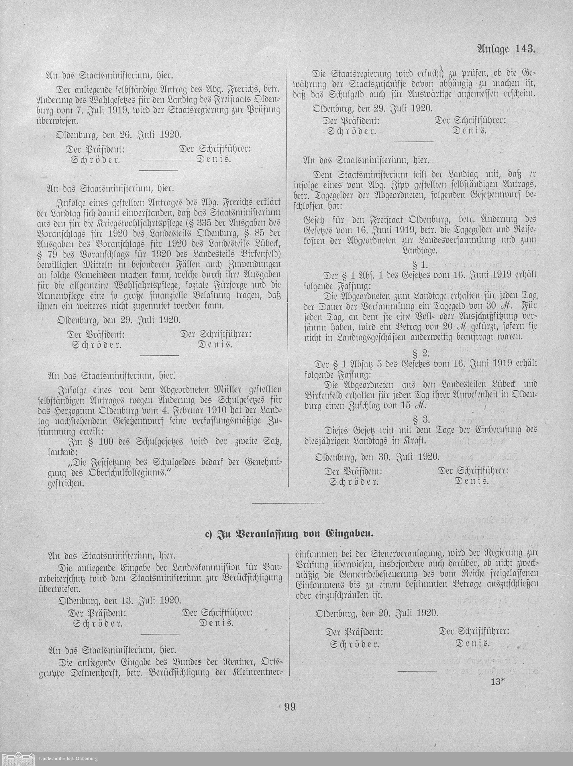Verhandlungen der ... Versammlung des ... Landtags des Freistaats Oldenburg / Anlagen zu den Niederschriften und Berichten / Anlagen zu den Protokollen und Berichten