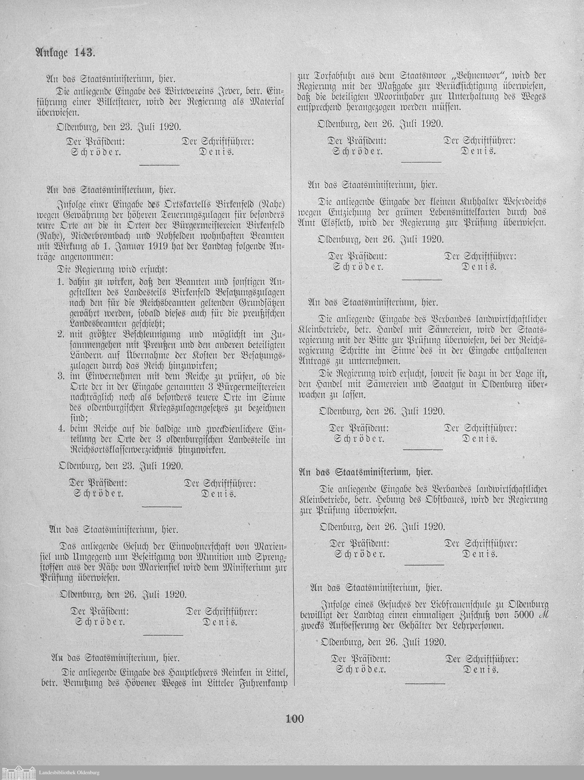 Verhandlungen der ... Versammlung des ... Landtags des Freistaats Oldenburg / Anlagen zu den Niederschriften und Berichten / Anlagen zu den Protokollen und Berichten
