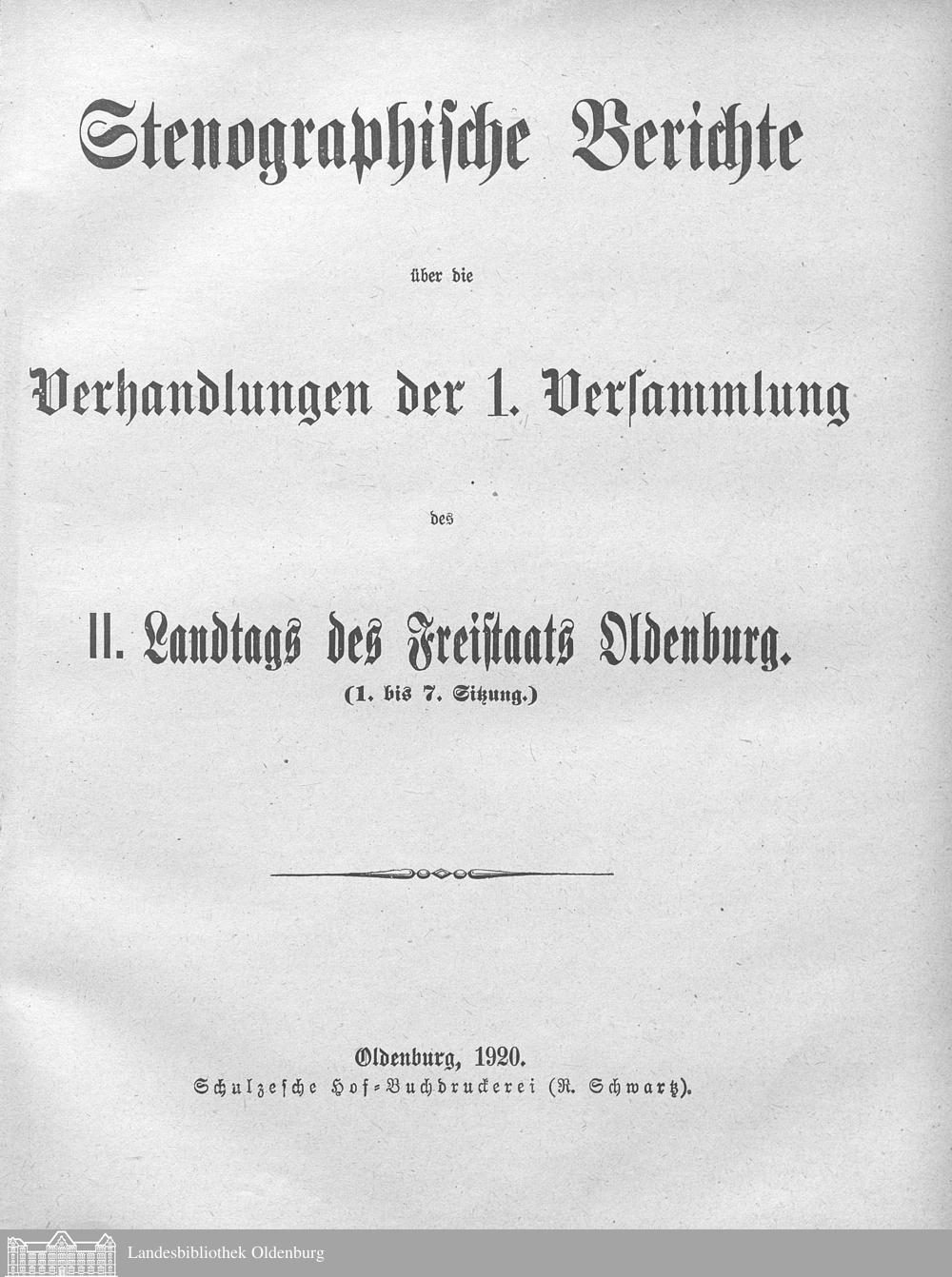 Verhandlungen der ... Versammlung des ... Landtags des Freistaats Oldenburg / Stenographische Berichte
