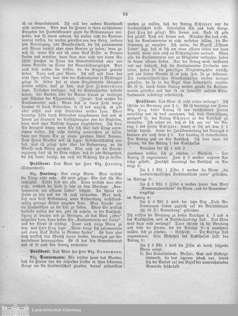 Verhandlungen der ... Versammlung des ... Landtags des Freistaats Oldenburg