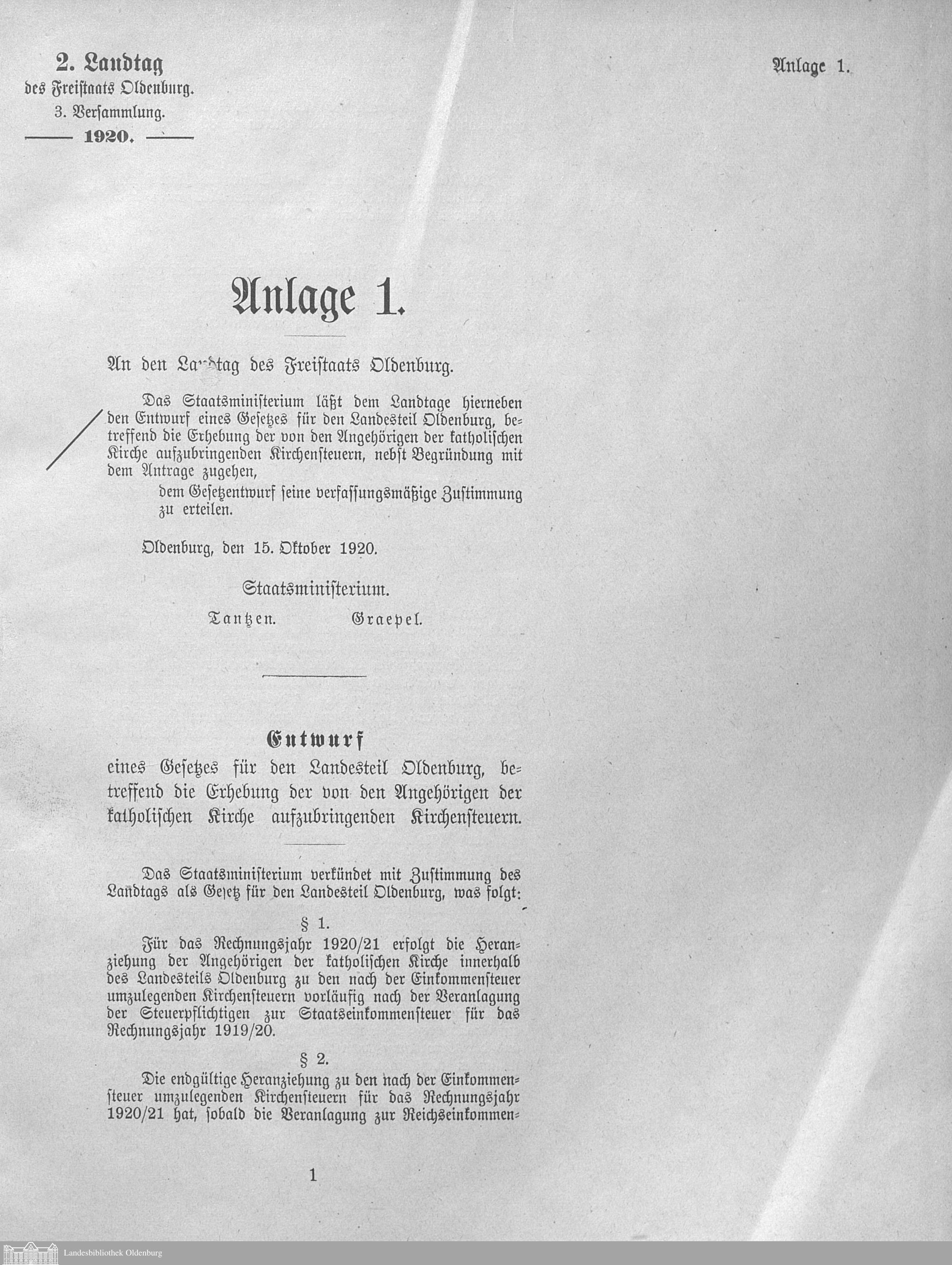 Verhandlungen der ... Versammlung des ... Landtags des Freistaats Oldenburg / Anlagen zu den Niederschriften und Berichten / Anlagen zu den Protokollen und Berichten
