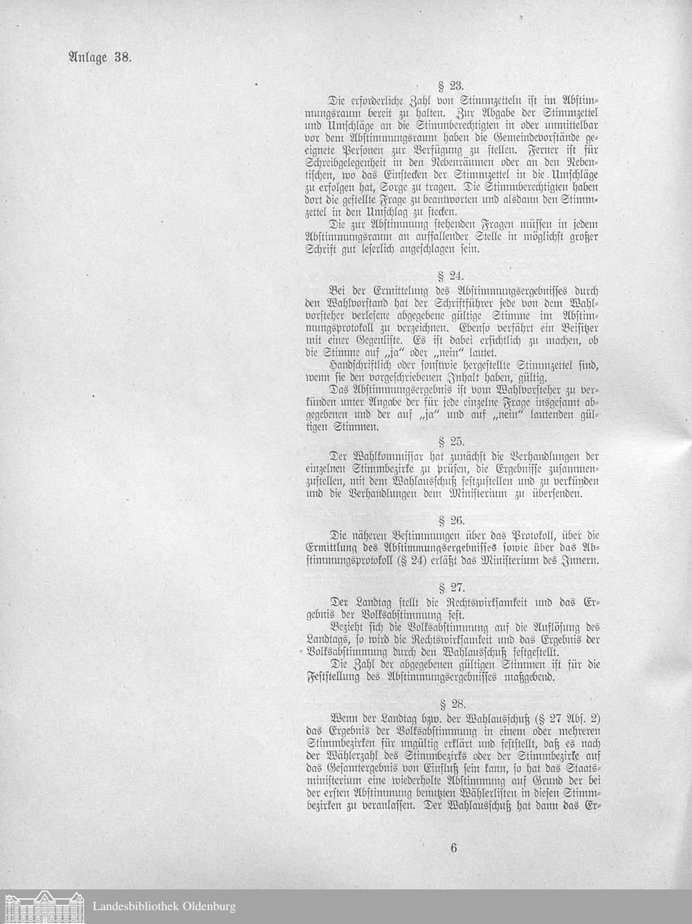 Verhandlungen der ... Versammlung des ... Landtags des Freistaats Oldenburg / Anlagen zu den Niederschriften und Berichten / Anlagen zu den Protokollen und Berichten