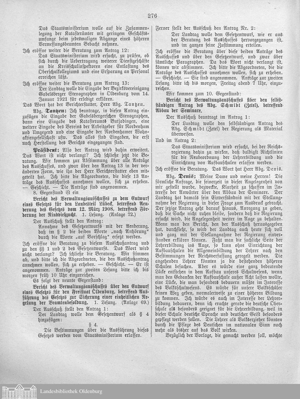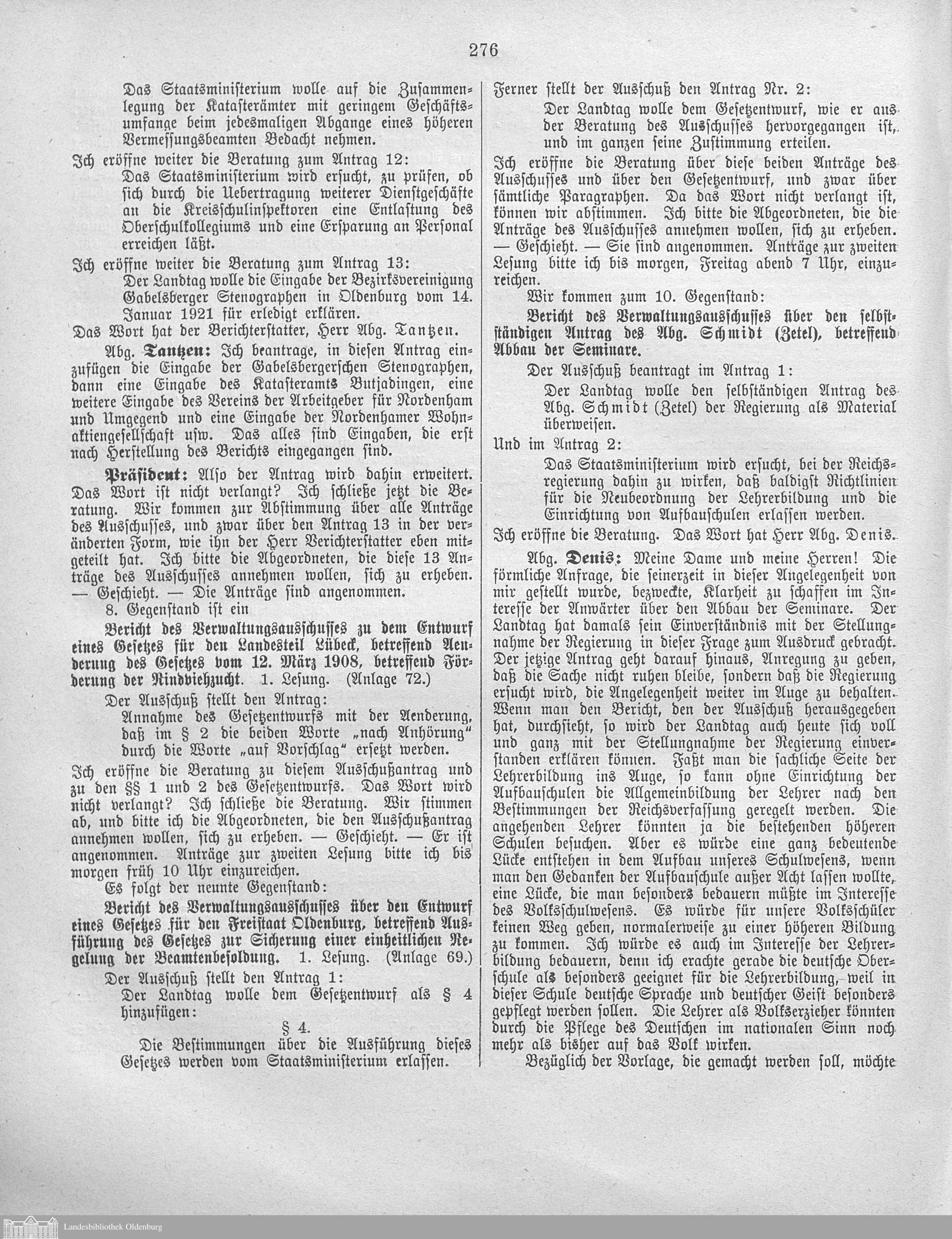 Verhandlungen der ... Versammlung des ... Landtags des Freistaats Oldenburg / Stenographische Berichte