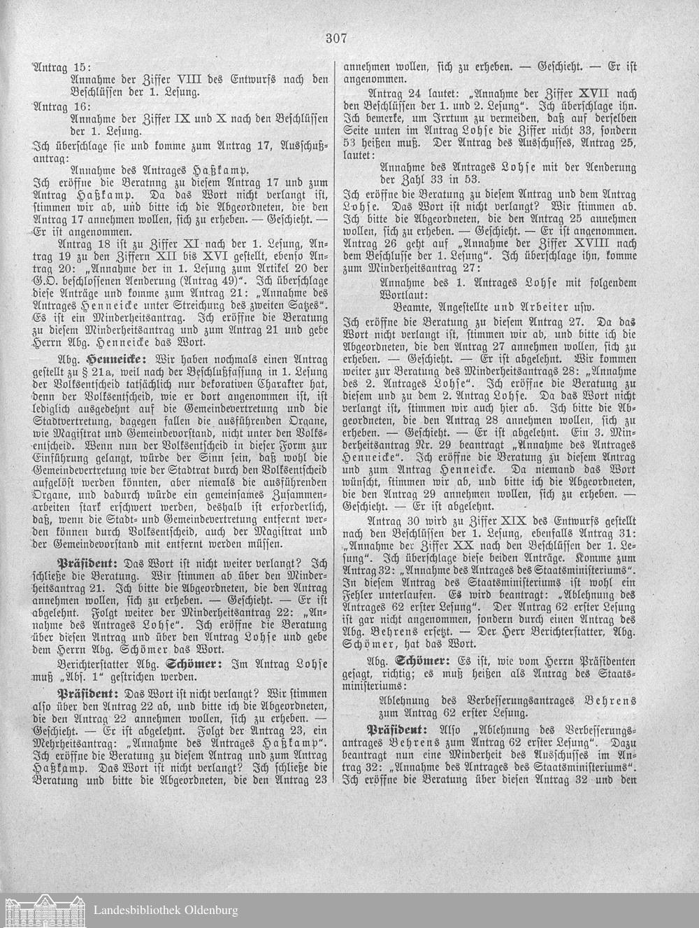 Verhandlungen der ... Versammlung des ... Landtags des Freistaats Oldenburg / Stenographische Berichte