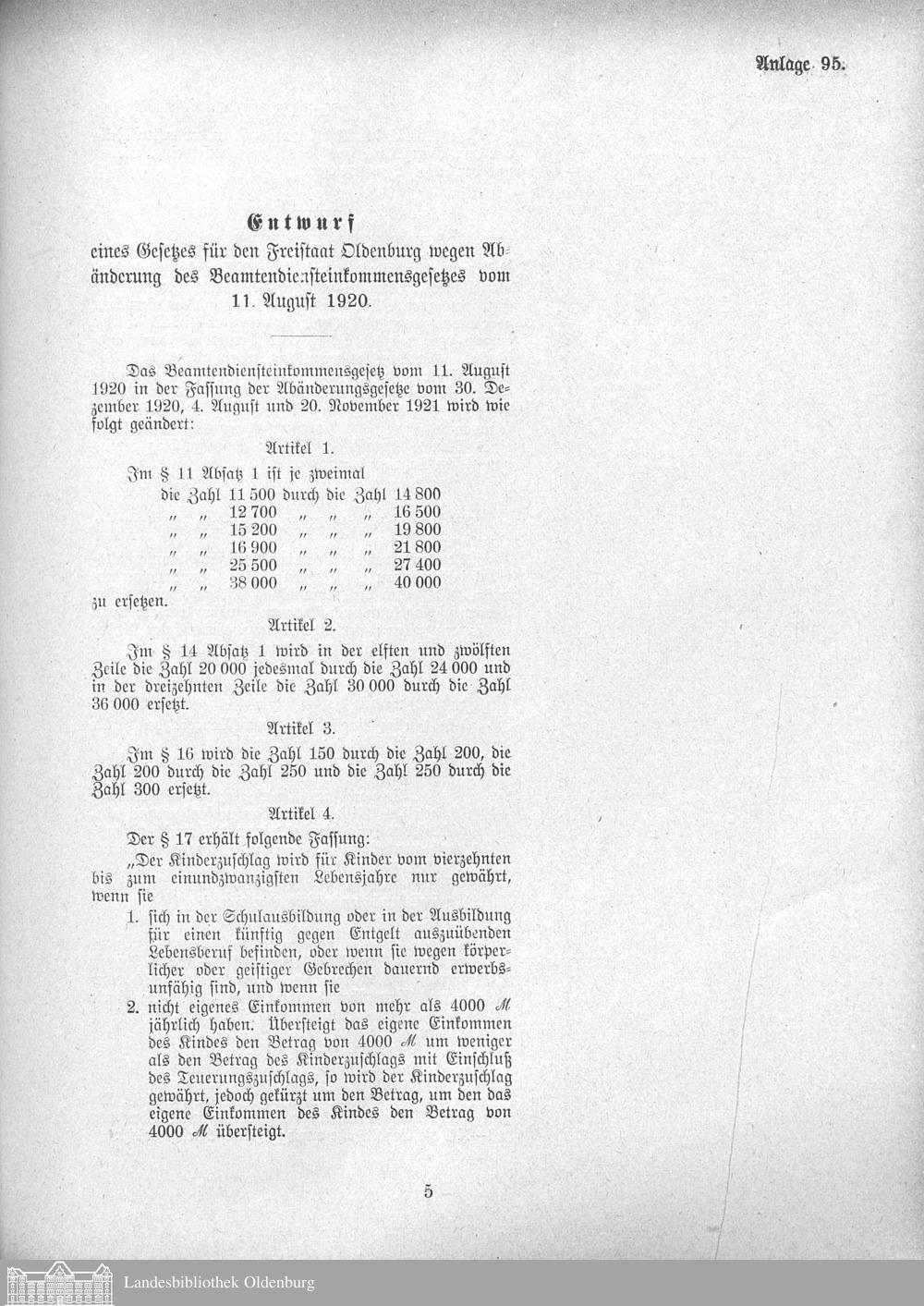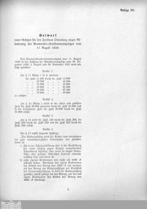 Verhandlungen der ... Versammlung des ... Landtags des Freistaats Oldenburg / Anlagen zu den Niederschriften und Berichten / Anlagen zu den Protokollen und Berichten