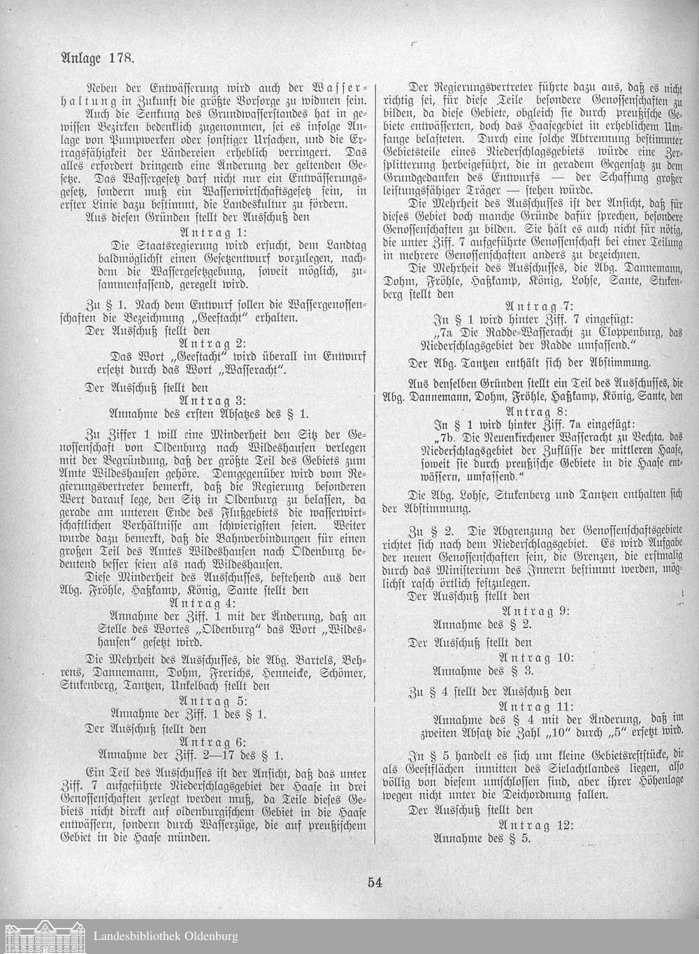 Verhandlungen der ... Versammlung des ... Landtags des Freistaats Oldenburg / Anlagen zu den Niederschriften und Berichten / Anlagen zu den Protokollen und Berichten