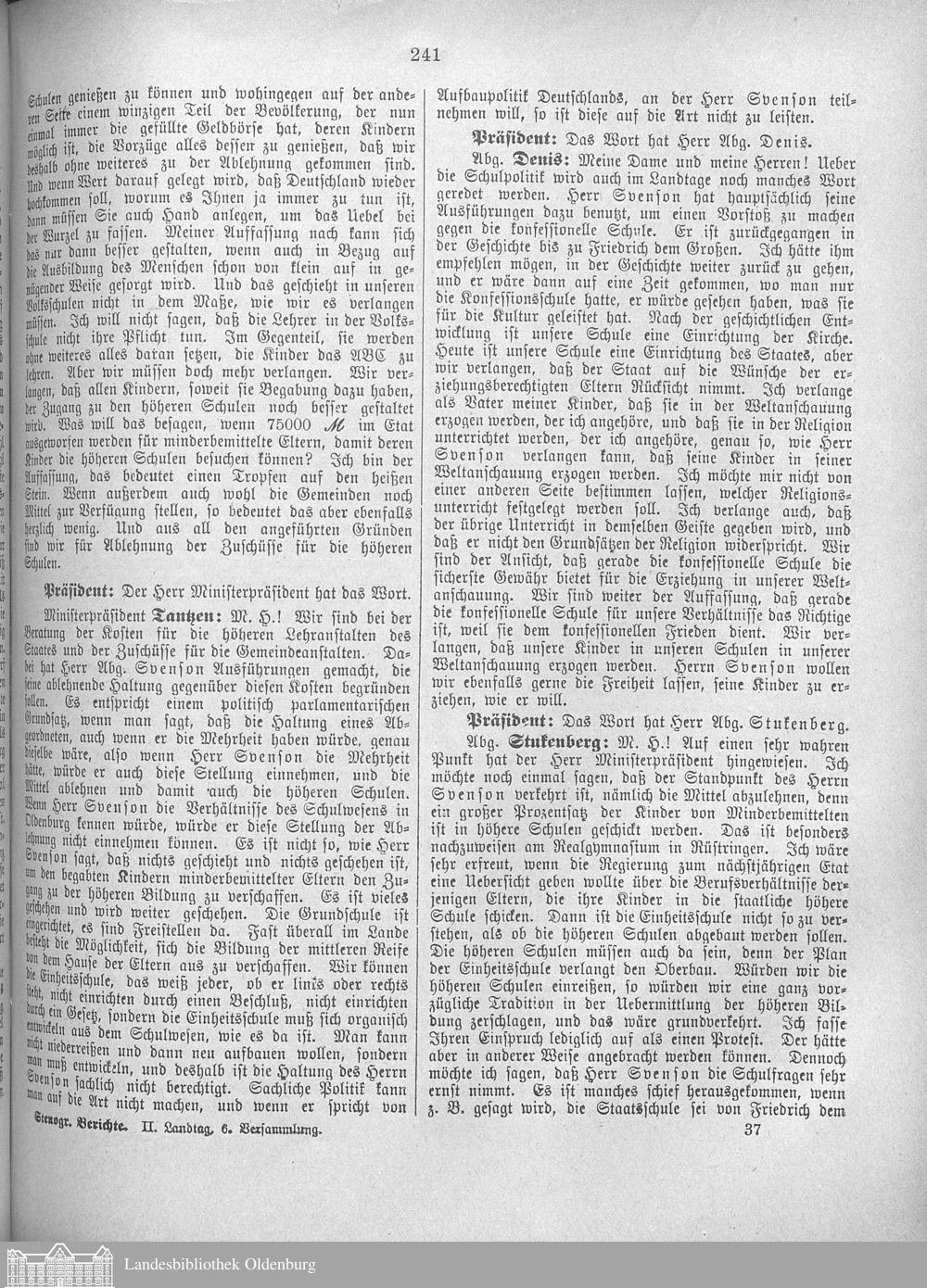Verhandlungen der ... Versammlung des ... Landtags des Freistaats Oldenburg / Stenographische Berichte