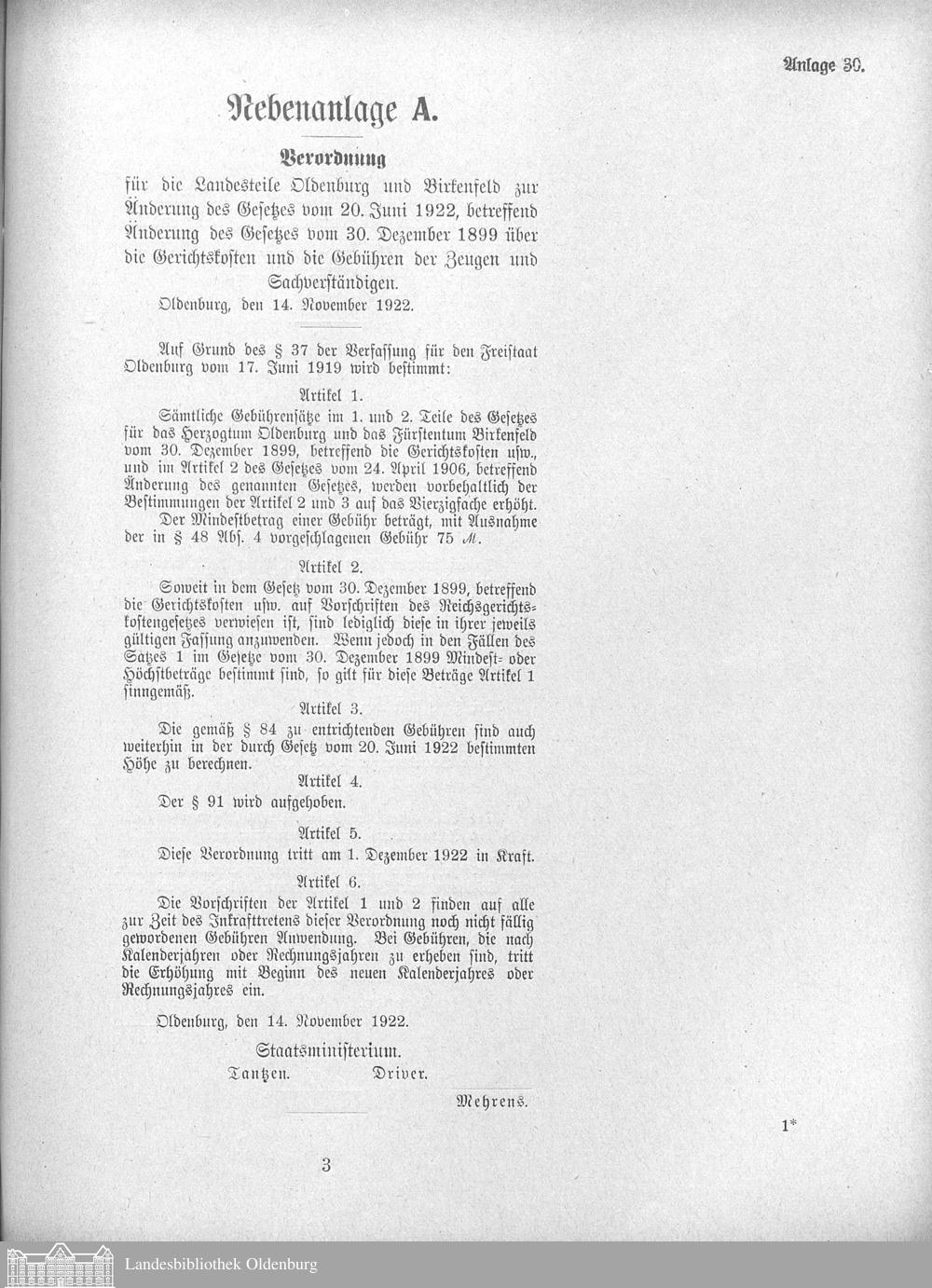 Verhandlungen der ... Versammlung des ... Landtags des Freistaats Oldenburg / Anlagen zu den Niederschriften und Berichten / Anlagen zu den Protokollen und Berichten