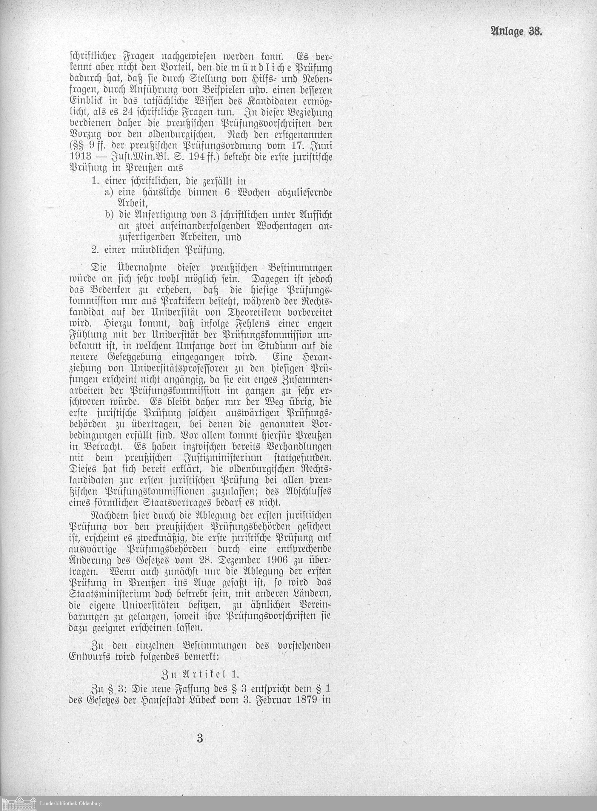 Verhandlungen der ... Versammlung des ... Landtags des Freistaats Oldenburg / Anlagen zu den Niederschriften und Berichten / Anlagen zu den Protokollen und Berichten