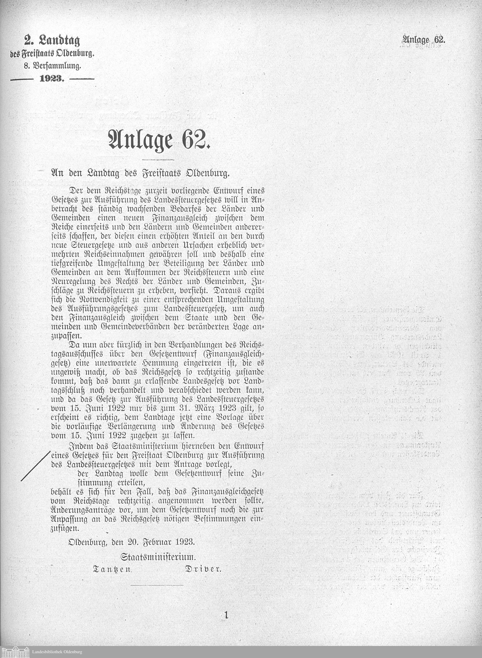 Verhandlungen der ... Versammlung des ... Landtags des Freistaats Oldenburg / Anlagen zu den Niederschriften und Berichten / Anlagen zu den Protokollen und Berichten