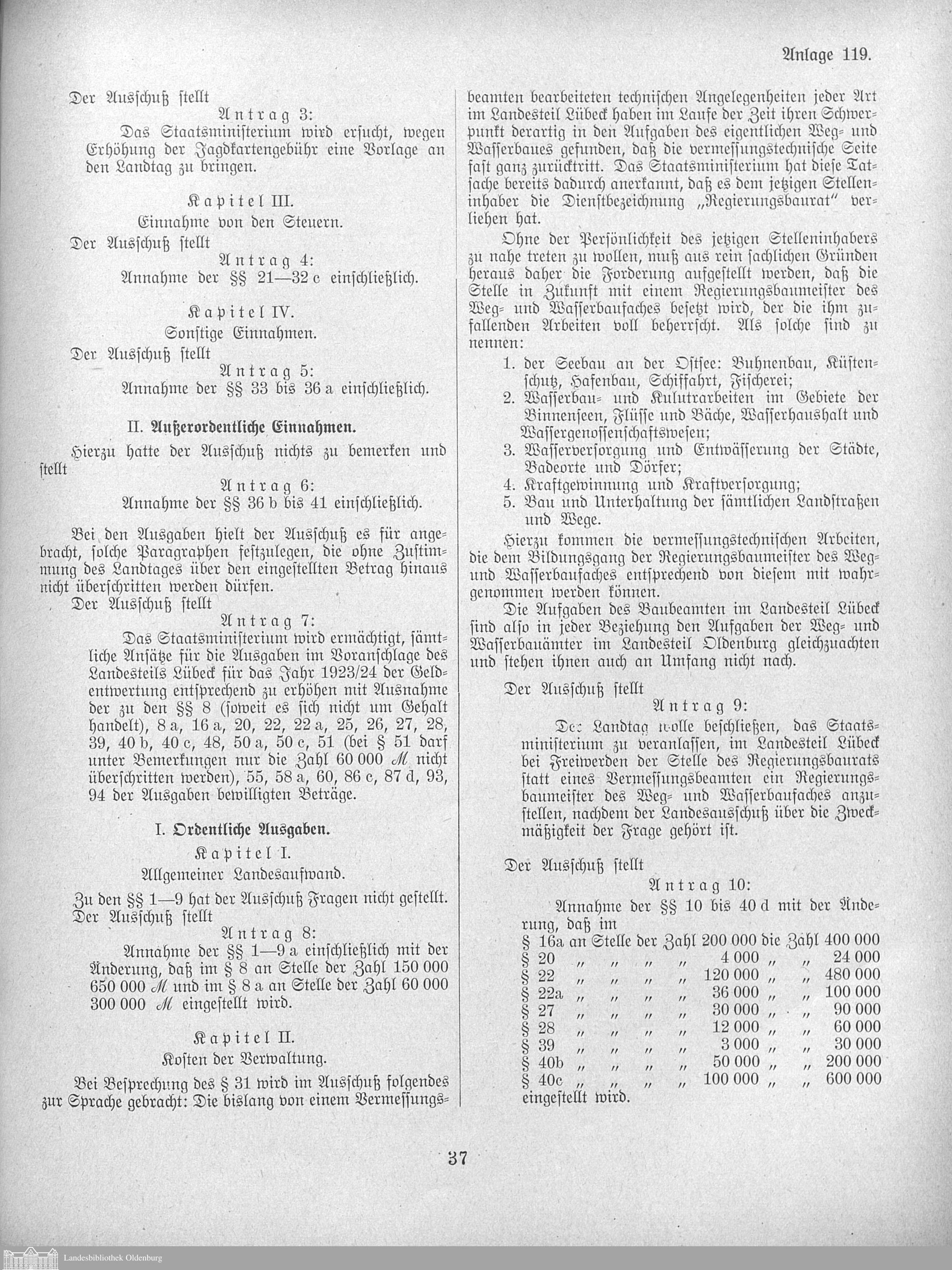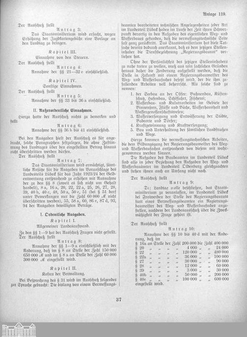 Verhandlungen der ... Versammlung des ... Landtags des Freistaats Oldenburg / Anlagen zu den Niederschriften und Berichten / Anlagen zu den Protokollen und Berichten