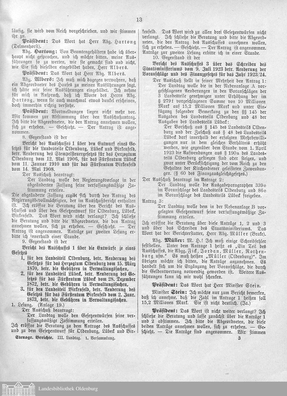 III. Landtag 10.07.1923-25.03.1925