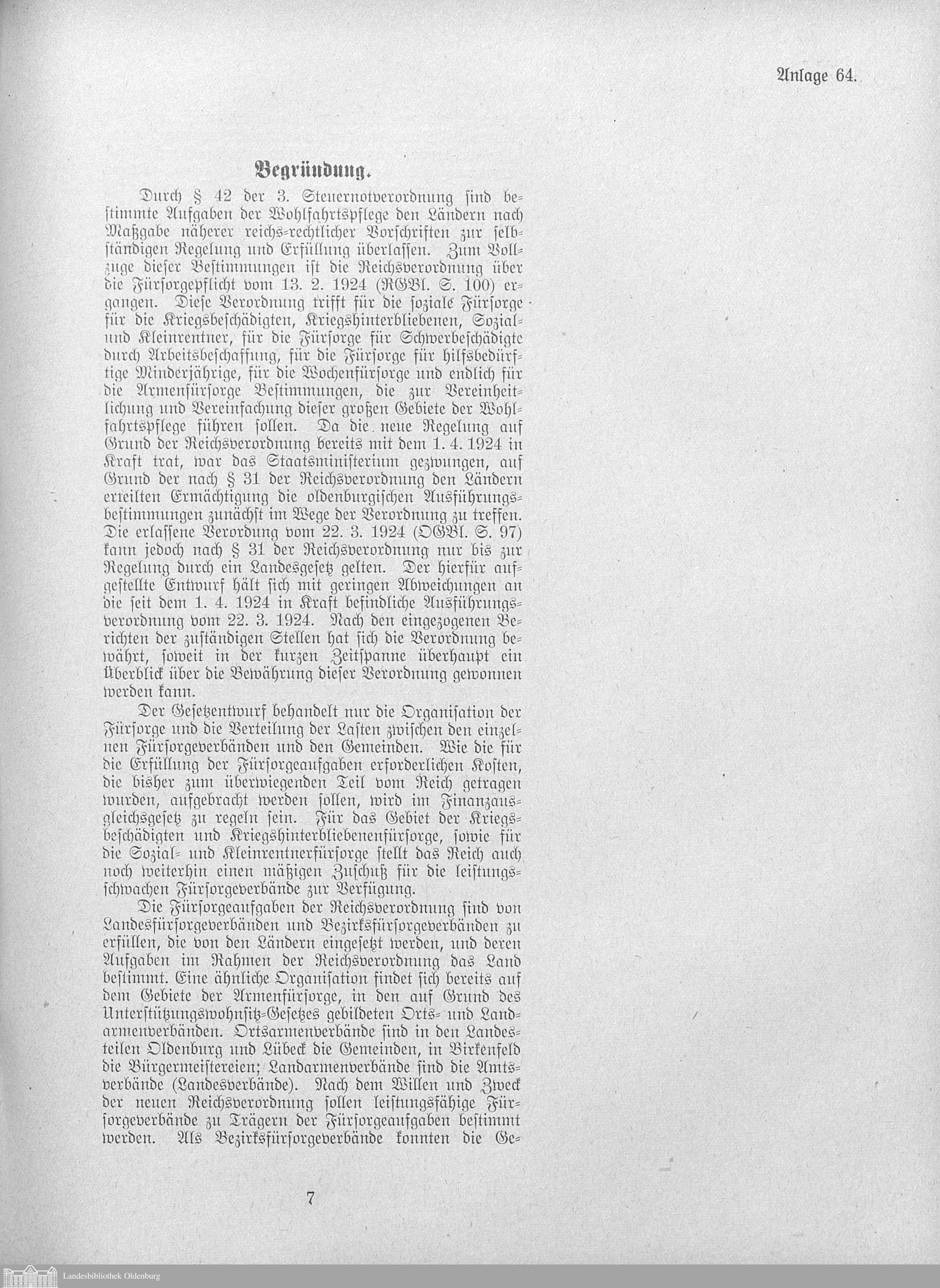 Verhandlungen der ... Versammlung des ... Landtags des Freistaats Oldenburg / Anlagen zu den Niederschriften und Berichten / Anlagen zu den Protokollen und Berichten