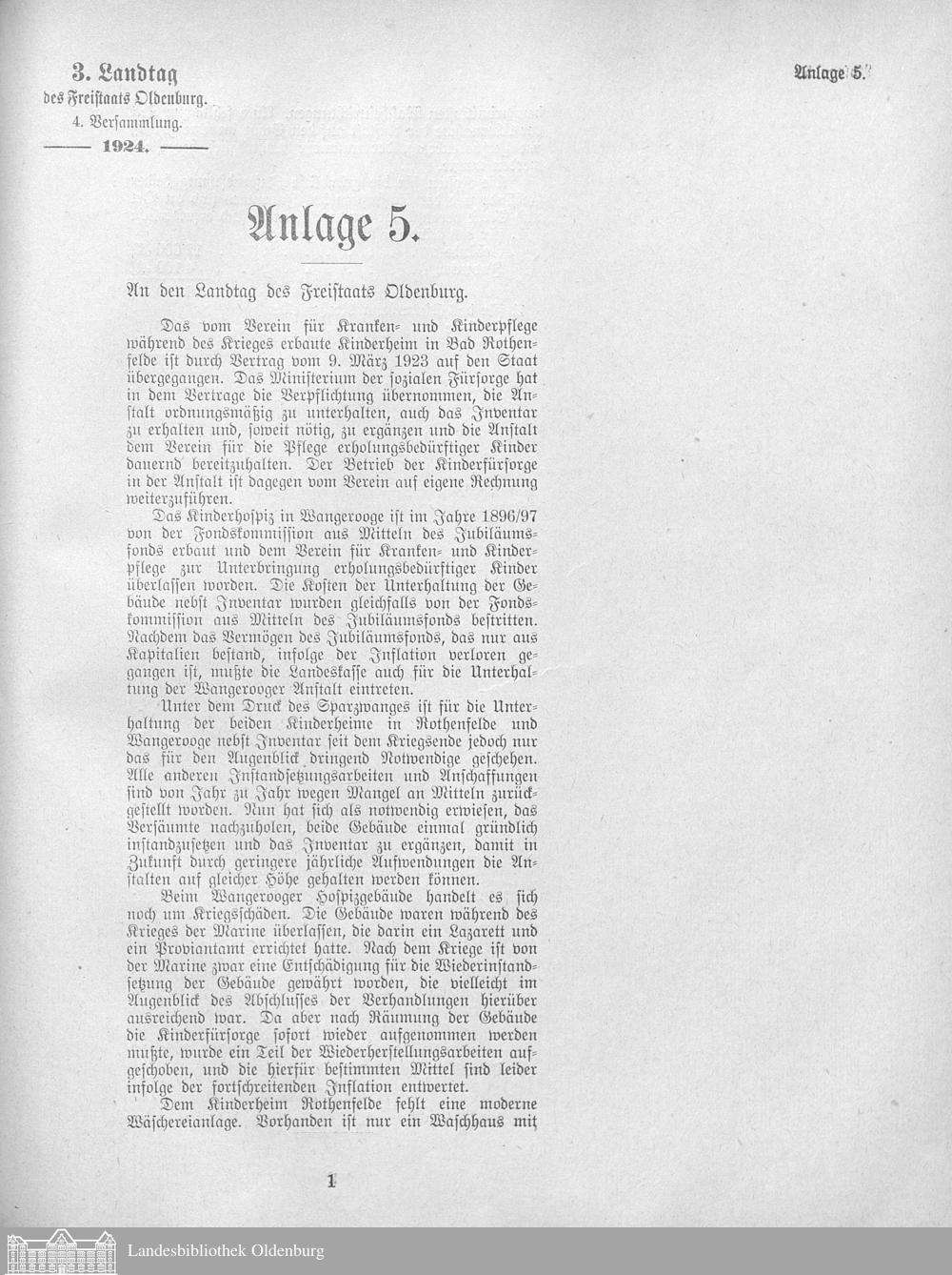 Verhandlungen der ... Versammlung des ... Landtags des Freistaats Oldenburg / Anlagen zu den Niederschriften und Berichten / Anlagen zu den Protokollen und Berichten