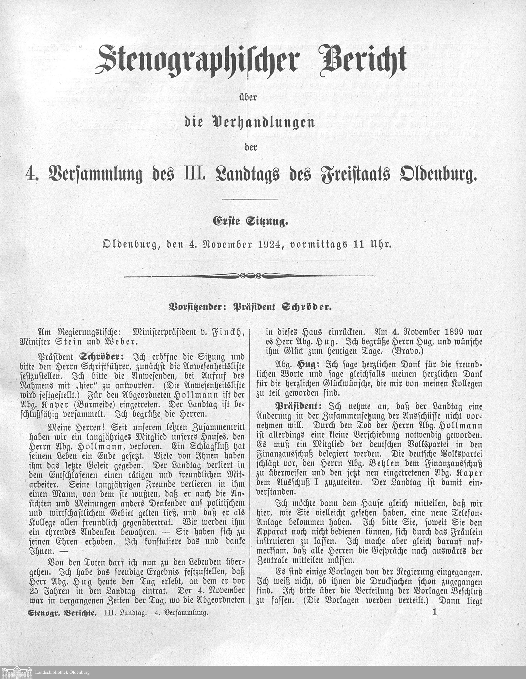 Verhandlungen der ... Versammlung des ... Landtags des Freistaats Oldenburg / Stenographische Berichte