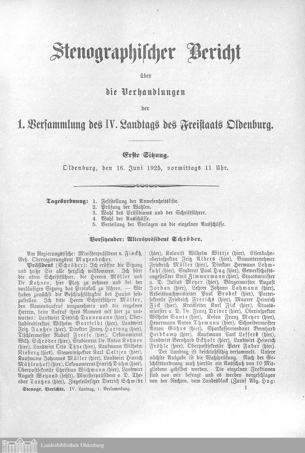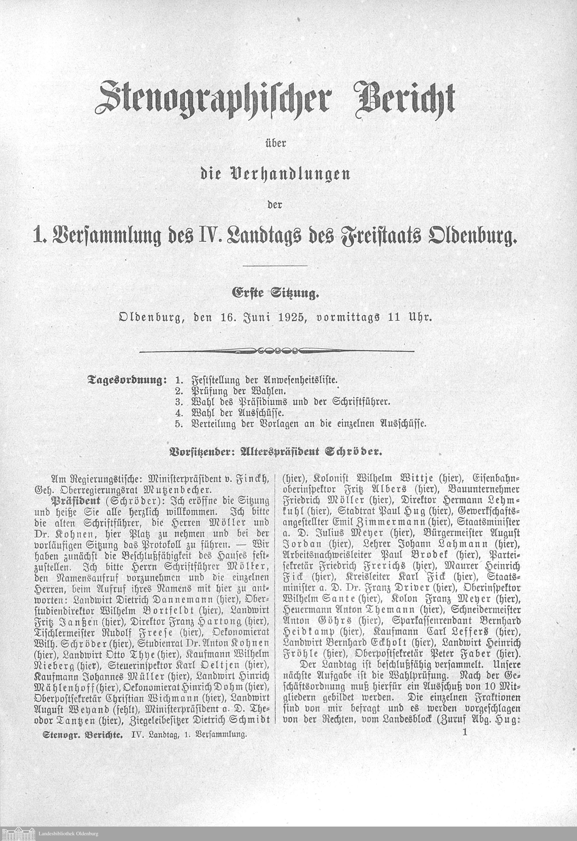 Verhandlungen der ... Versammlung des ... Landtags des Freistaats Oldenburg / Stenographische Berichte