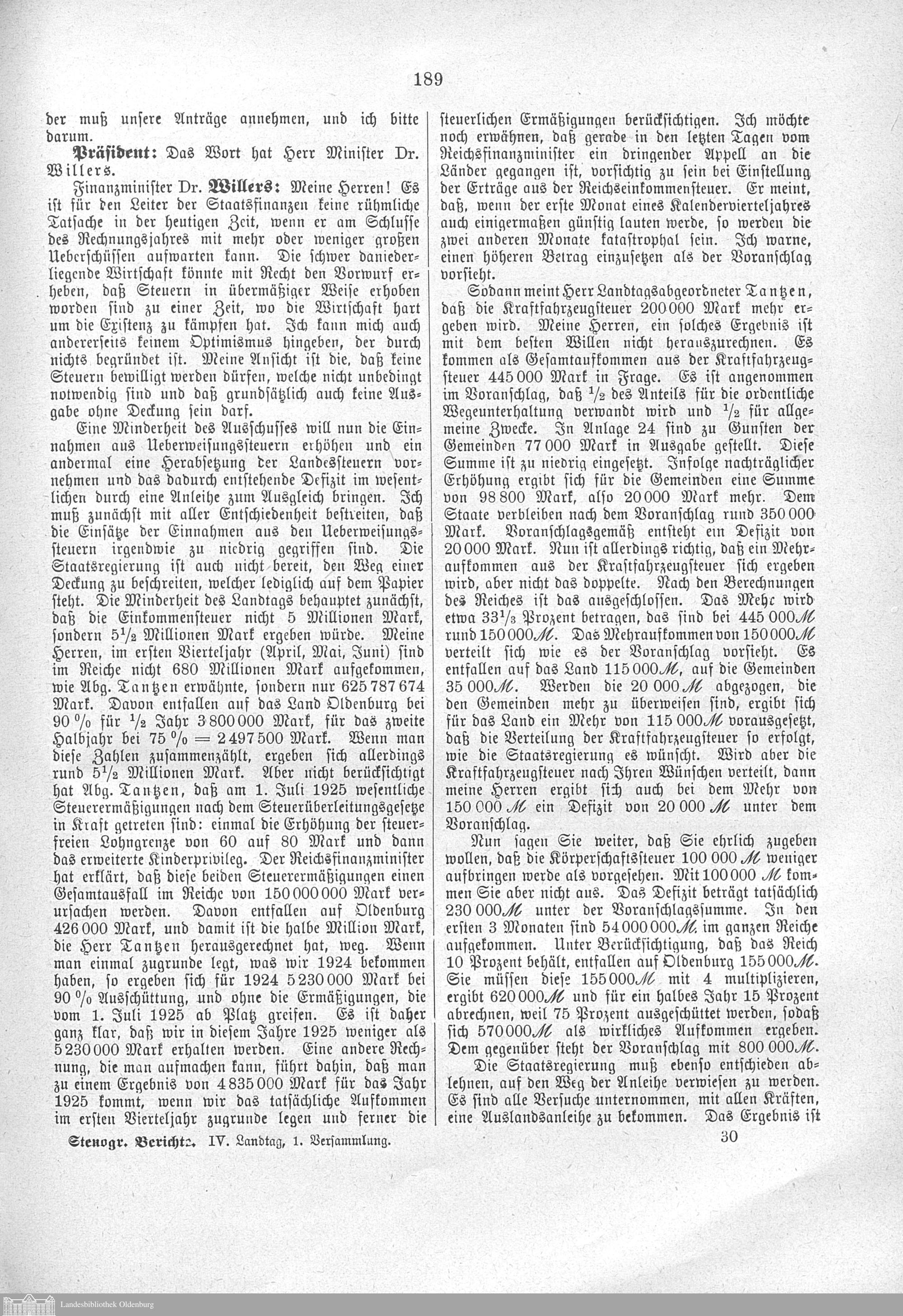 Verhandlungen der ... Versammlung des ... Landtags des Freistaats Oldenburg / Stenographische Berichte