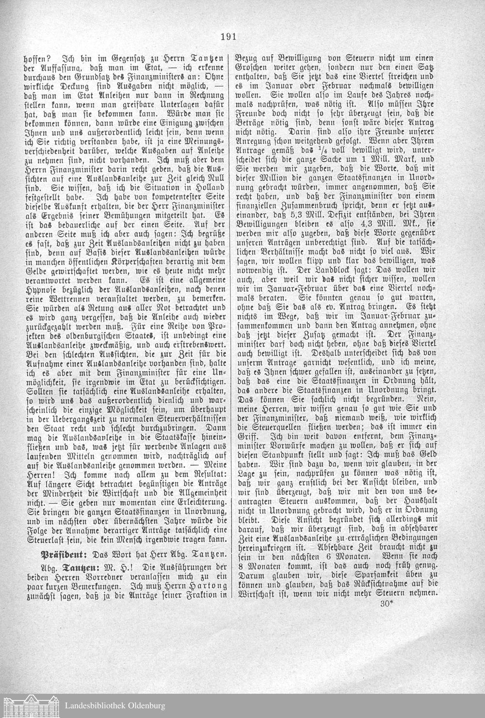 Verhandlungen der ... Versammlung des ... Landtags des Freistaats Oldenburg