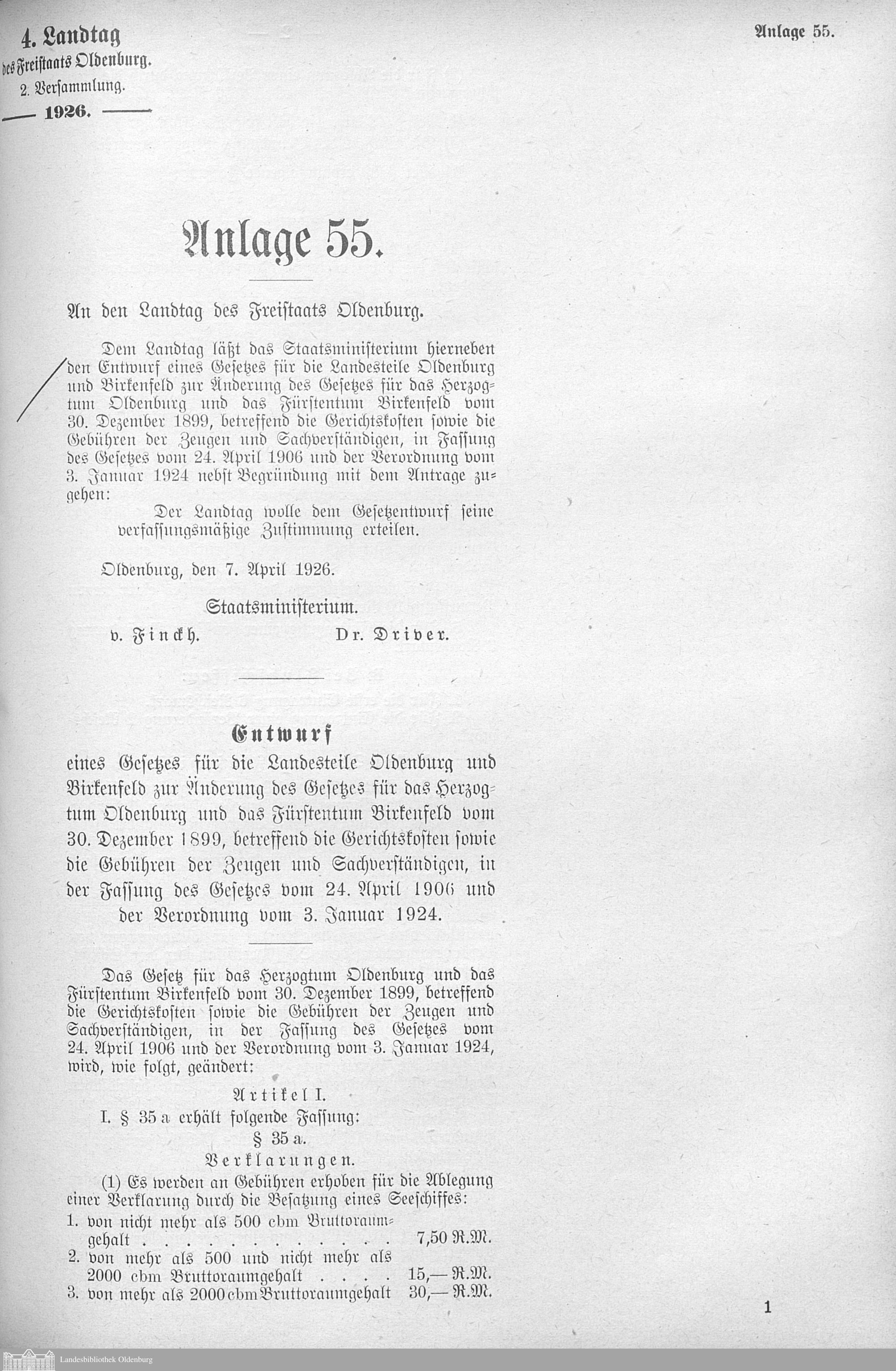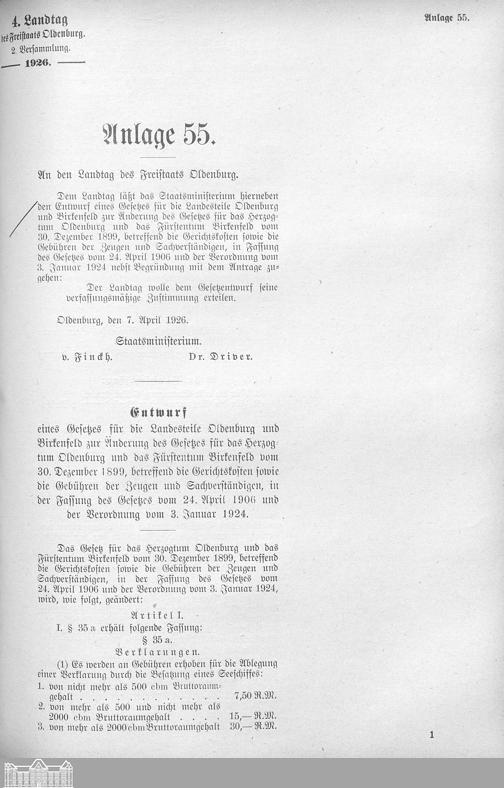 Verhandlungen der ... Versammlung des ... Landtags des Freistaats Oldenburg / Anlagen zu den Niederschriften und Berichten / Anlagen zu den Protokollen und Berichten