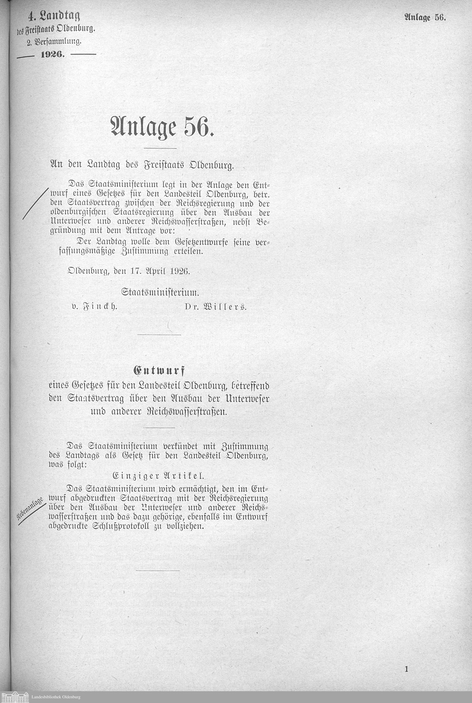 Verhandlungen der ... Versammlung des ... Landtags des Freistaats Oldenburg / Anlagen zu den Niederschriften und Berichten / Anlagen zu den Protokollen und Berichten