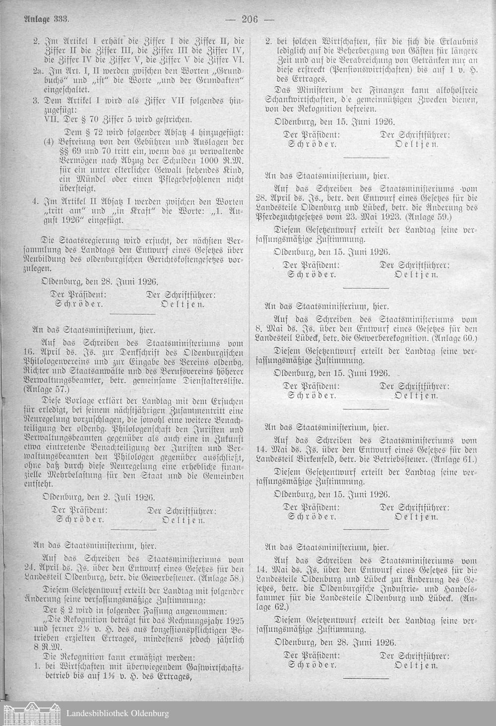 Verhandlungen der ... Versammlung des ... Landtags des Freistaats Oldenburg / Anlagen zu den Niederschriften und Berichten / Anlagen zu den Protokollen und Berichten