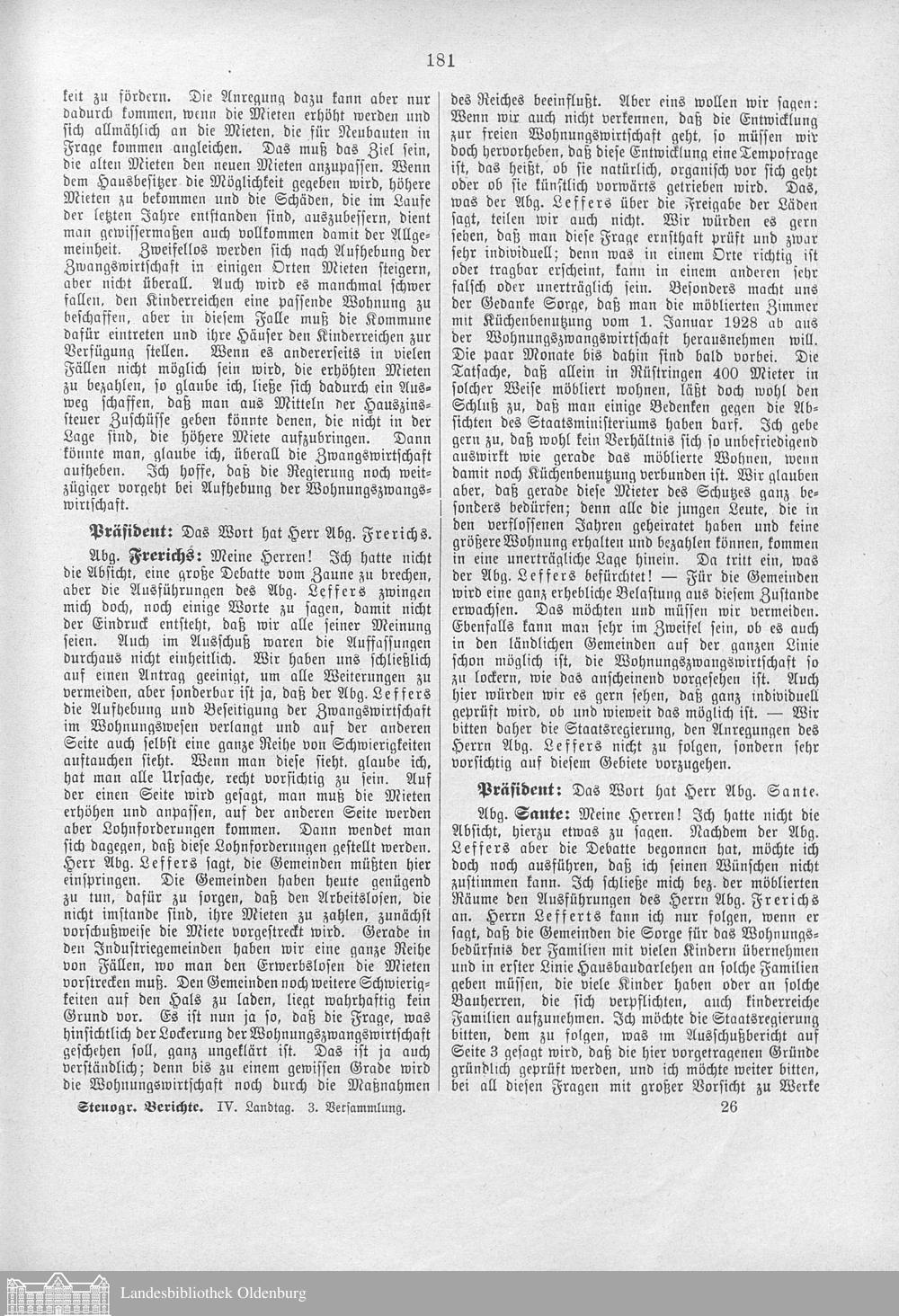 Verhandlungen der ... Versammlung des ... Landtags des Freistaats Oldenburg