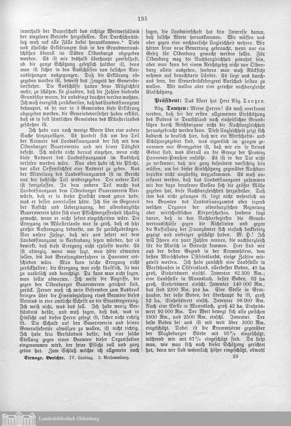 Verhandlungen der ... Versammlung des ... Landtags des Freistaats Oldenburg
