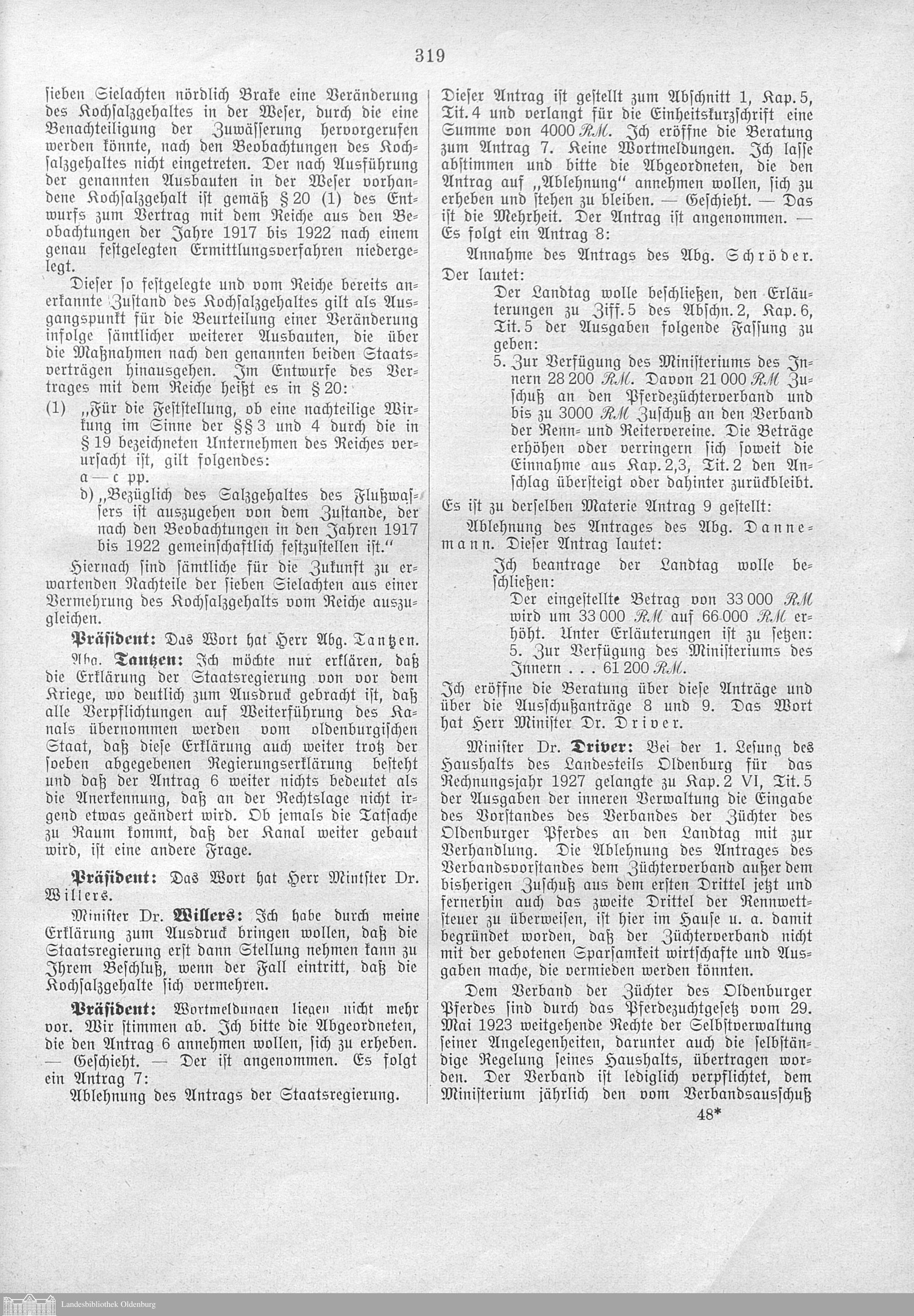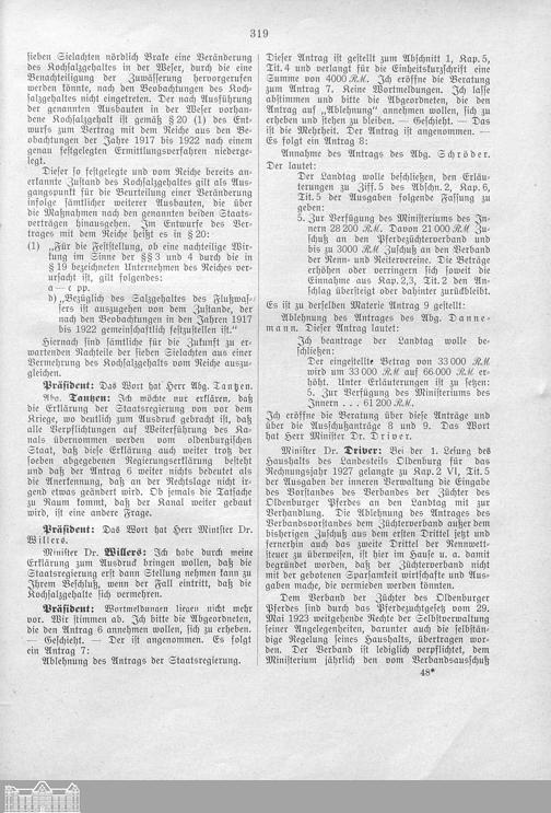 Verhandlungen der ... Versammlung des ... Landtags des Freistaats Oldenburg