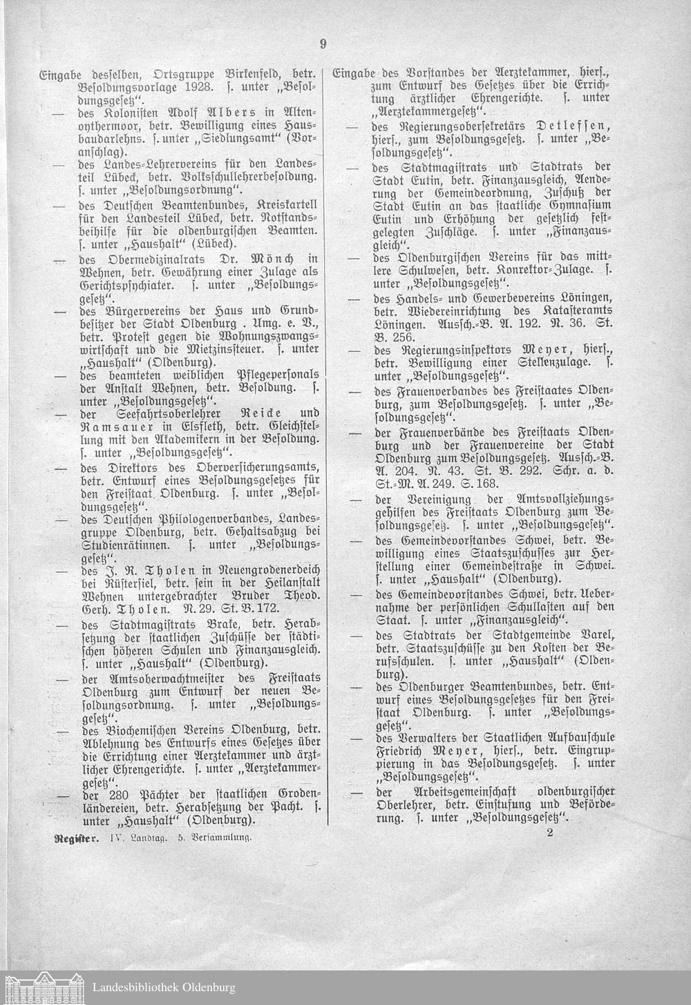 Verhandlungen des ... Allgemeinen Landtags des Großherzogtums Oldenburg / Alphabetisches Register