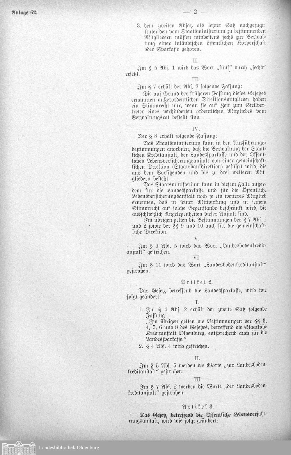 Verhandlungen der ... Versammlung des ... Landtags des Freistaats Oldenburg / Anlagen zu den Niederschriften und Berichten / Anlagen zu den Protokollen und Berichten