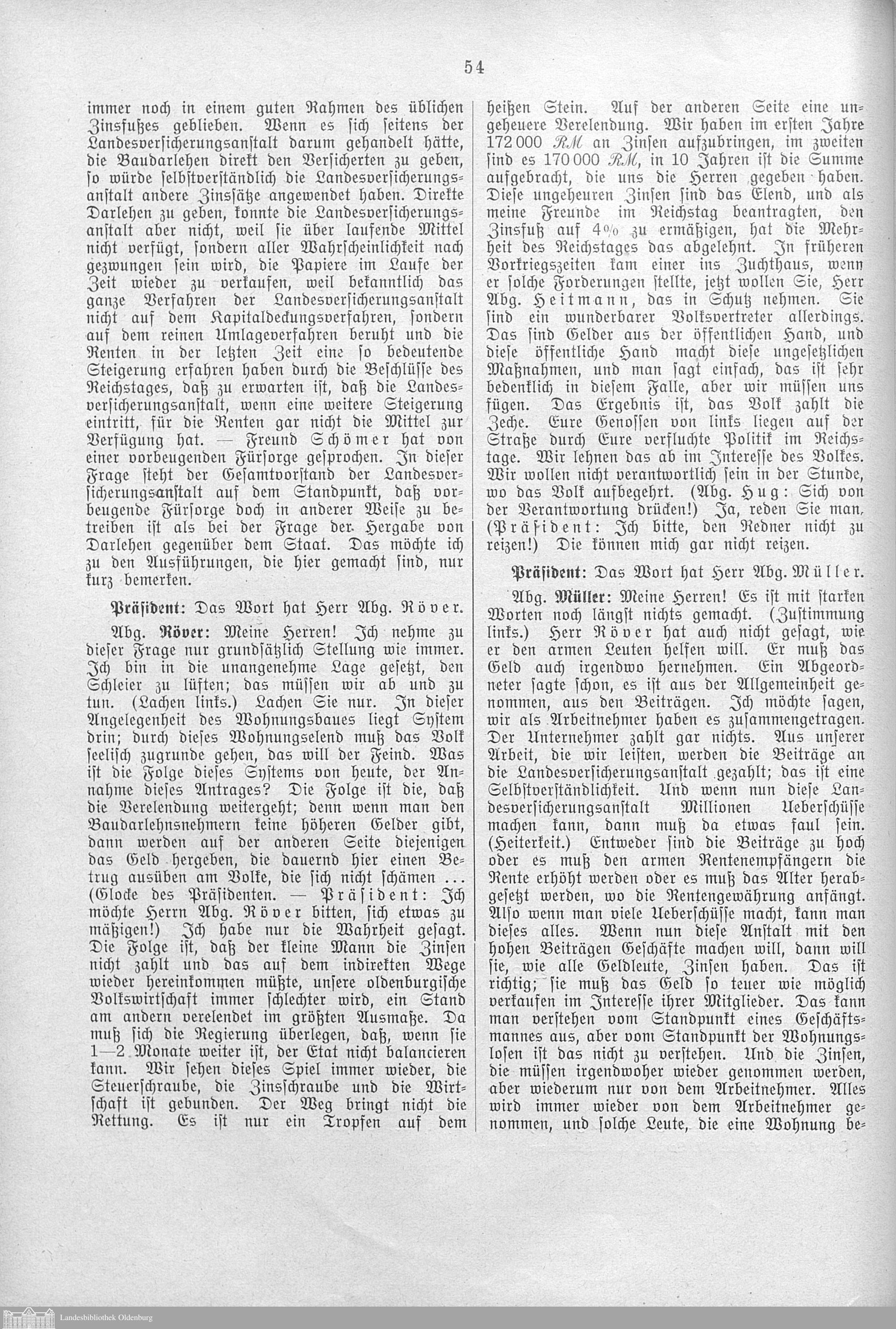 Verhandlungen der ... Versammlung des ... Landtags des Freistaats Oldenburg