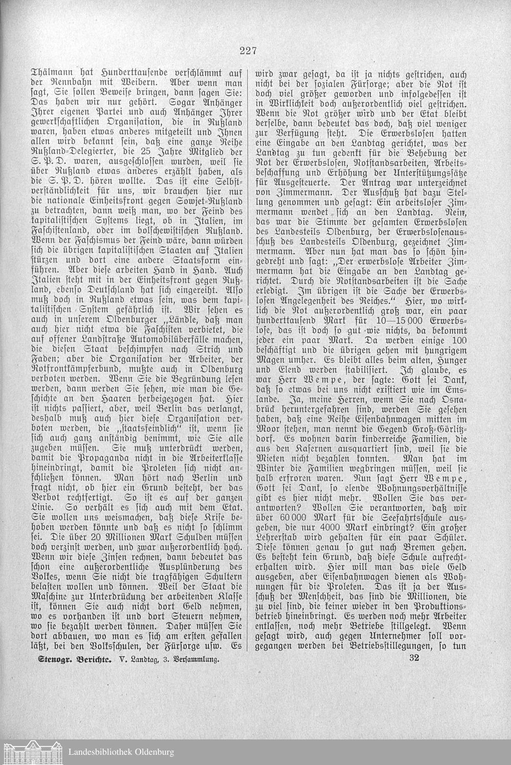 Verhandlungen der ... Versammlung des ... Landtags des Freistaats Oldenburg / Stenographische Berichte