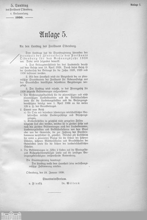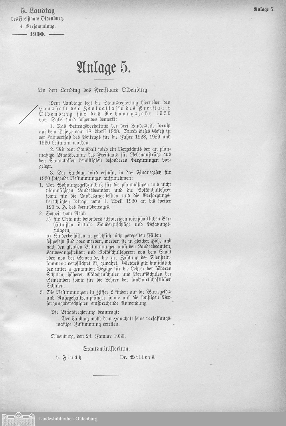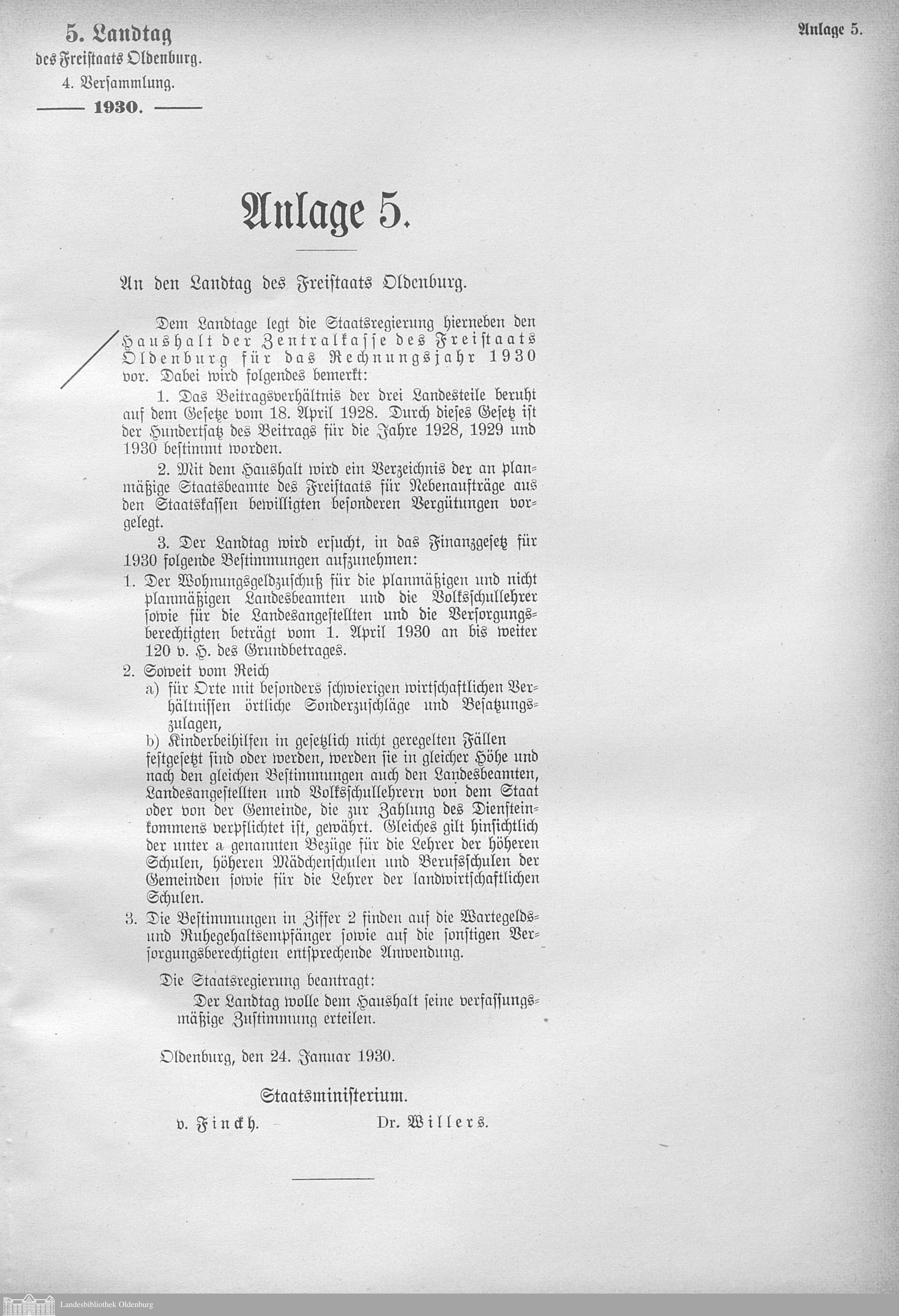 Verhandlungen der ... Versammlung des ... Landtags des Freistaats Oldenburg / Anlagen zu den Niederschriften und Berichten / Anlagen zu den Protokollen und Berichten