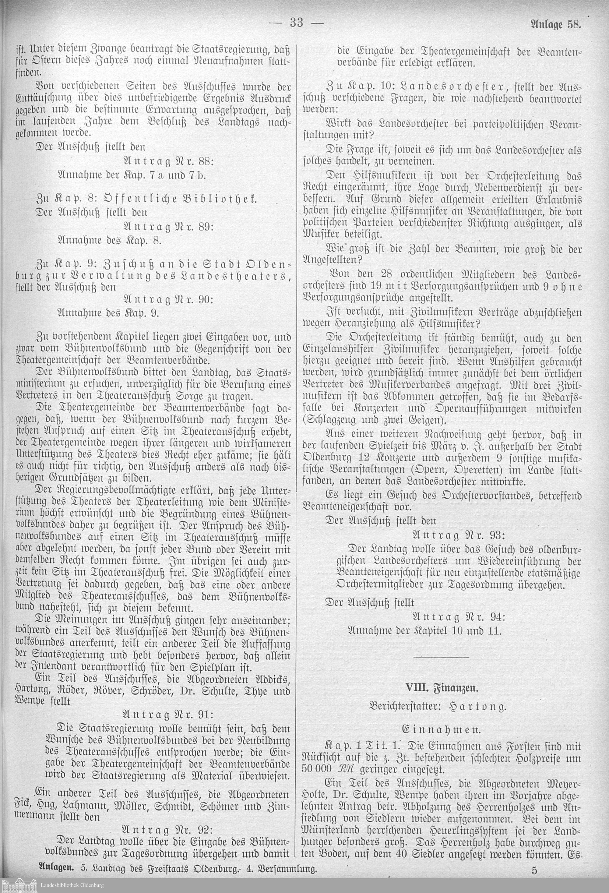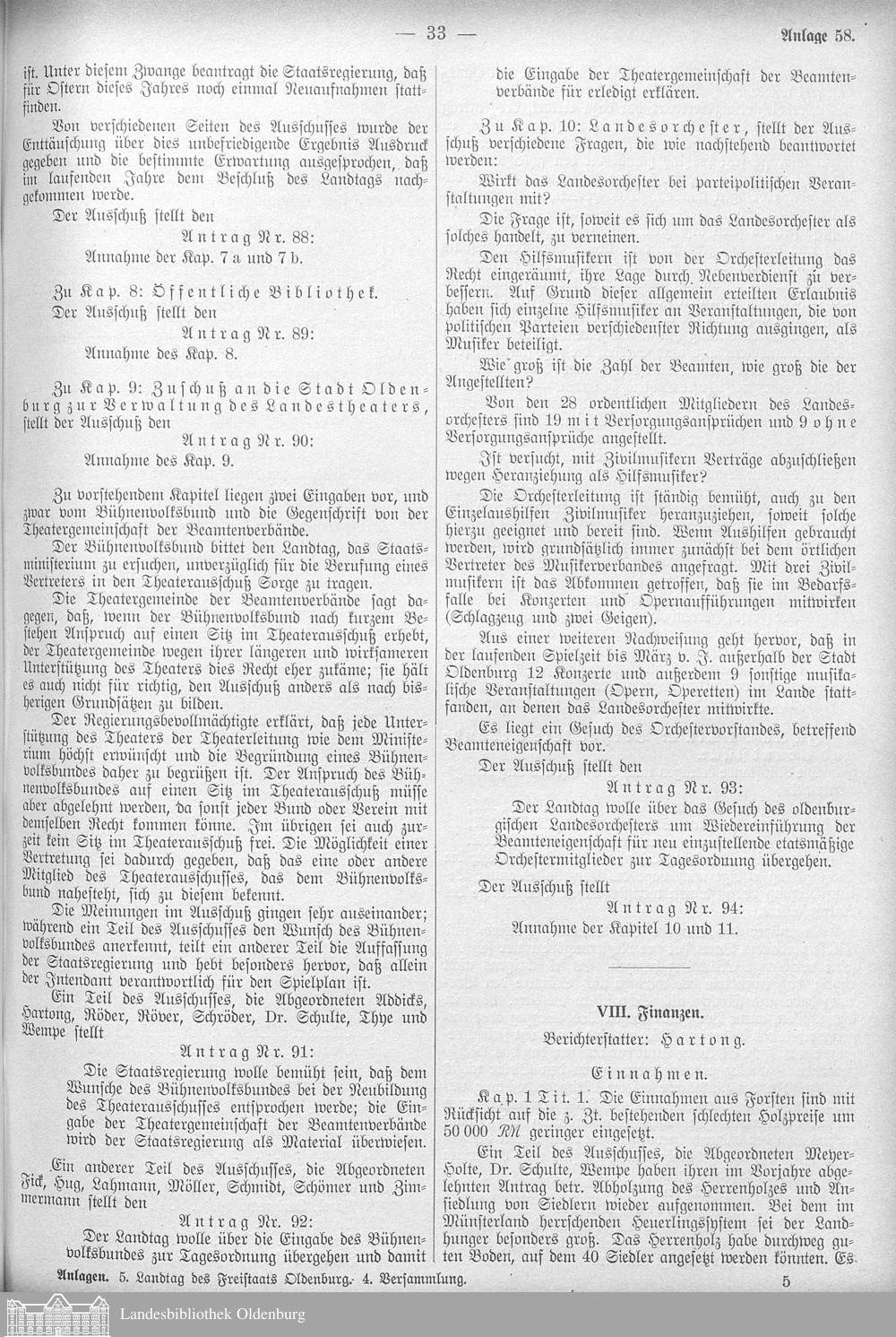Verhandlungen der ... Versammlung des ... Landtags des Freistaats Oldenburg / Anlagen zu den Niederschriften und Berichten / Anlagen zu den Protokollen und Berichten