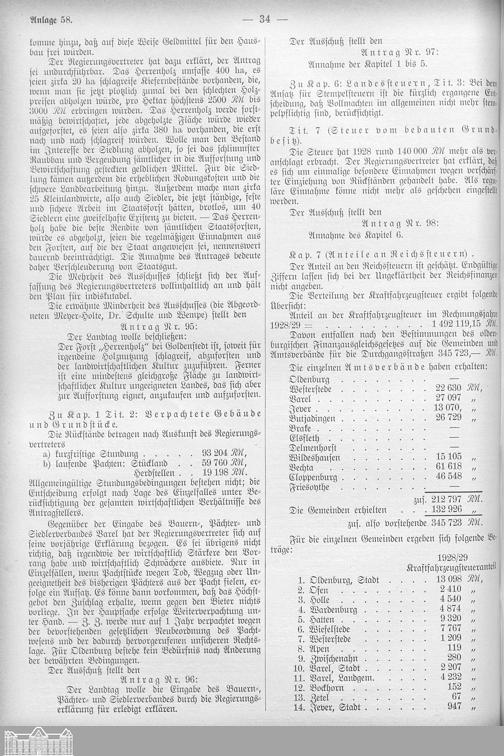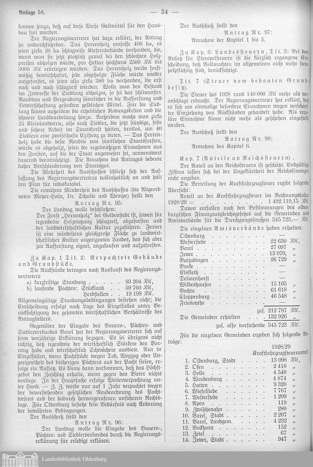 Verhandlungen der ... Versammlung des ... Landtags des Freistaats Oldenburg / Anlagen zu den Niederschriften und Berichten / Anlagen zu den Protokollen und Berichten