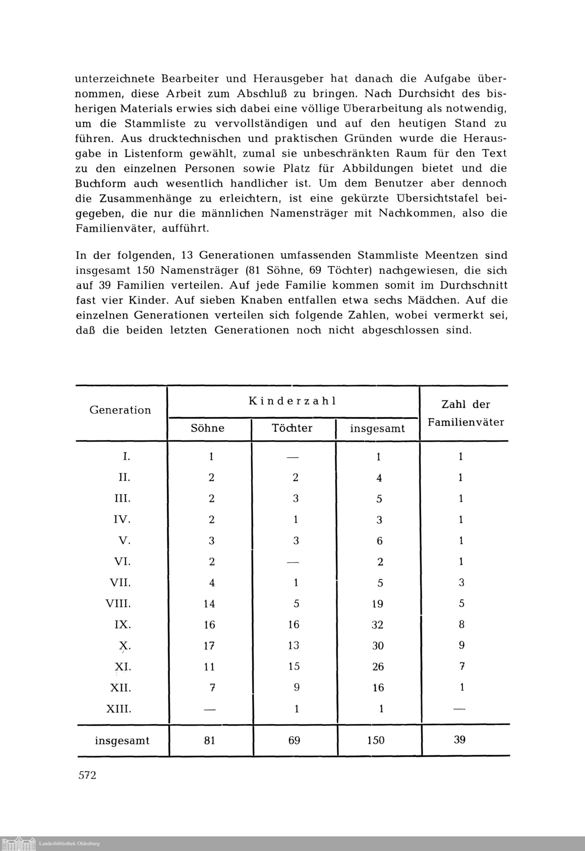 Stammliste des oldenburgischen Seefahrer- und Kaufmannsgeschlechts Meentzen. Von...