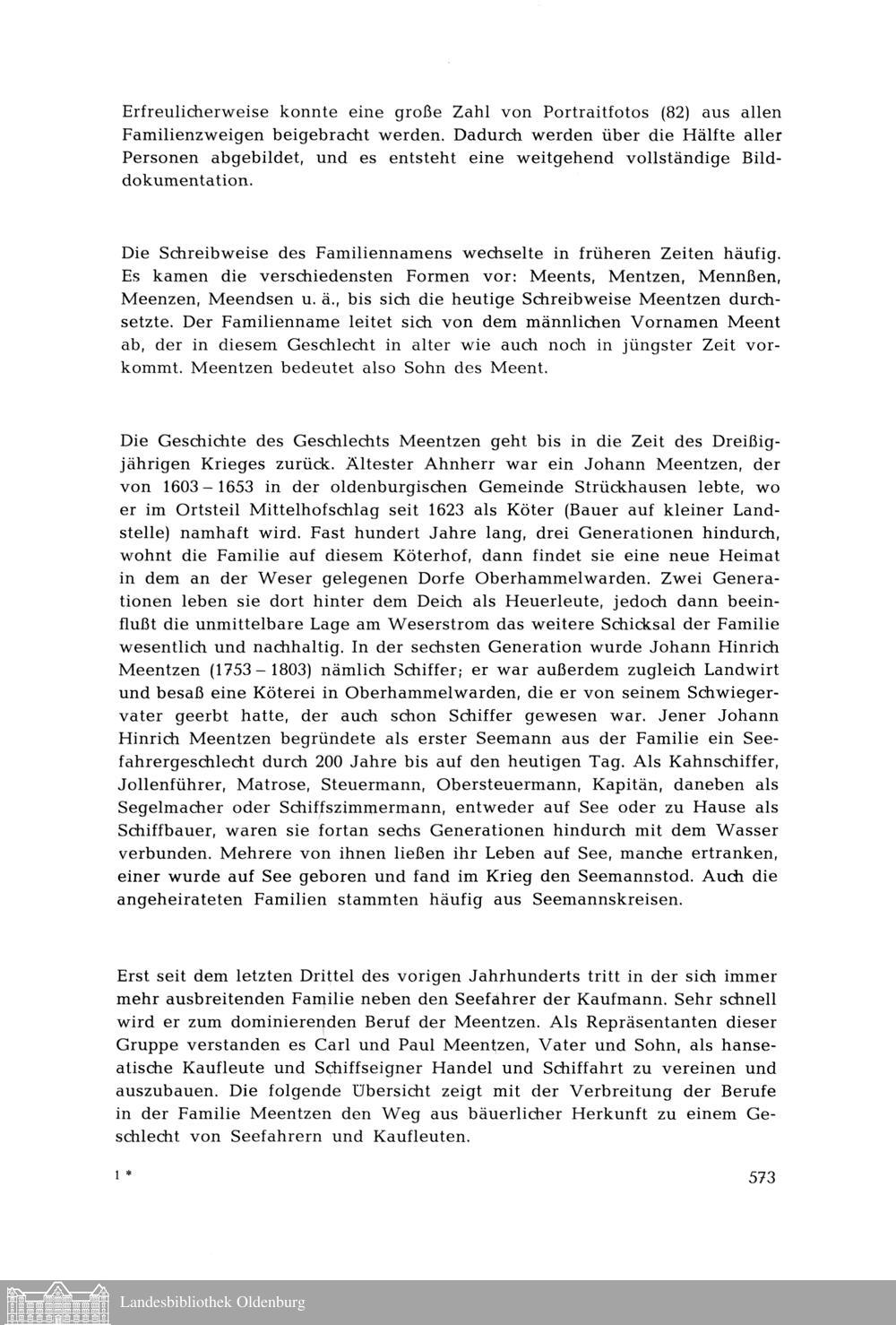 Stammliste des oldenburgischen Seefahrer- und Kaufmannsgeschlechts Meentzen. Von...